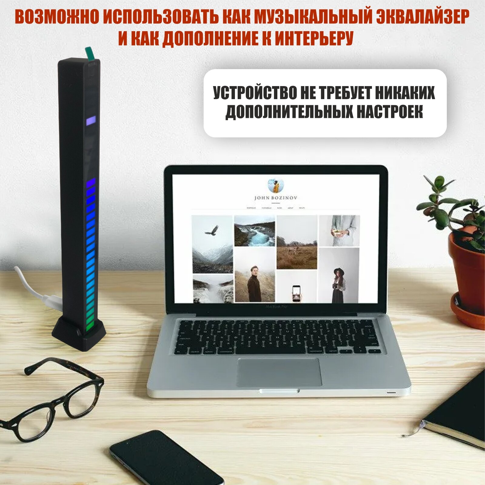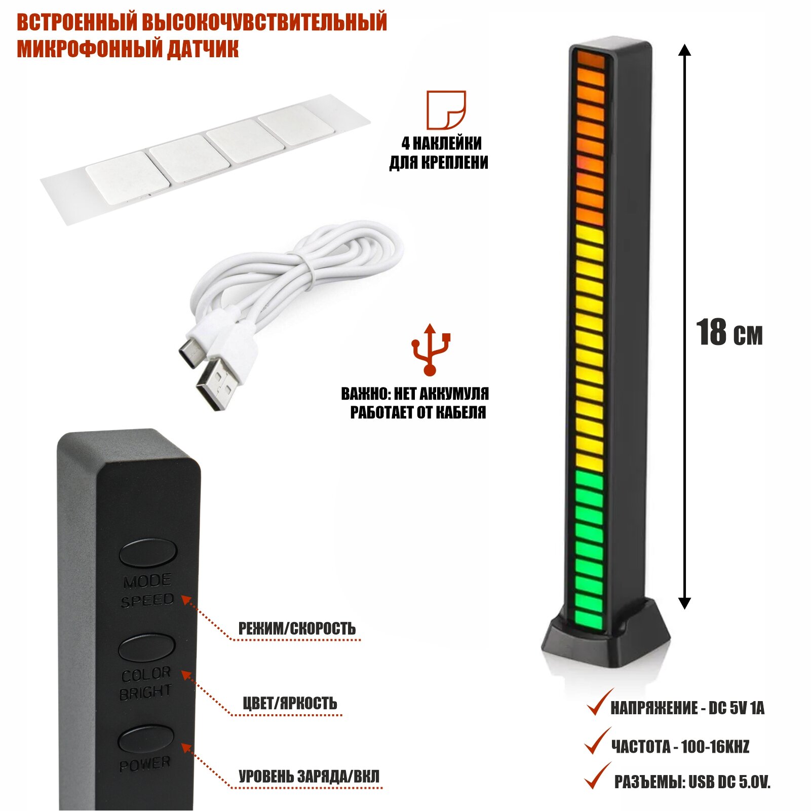 Светодиодная подсветка RGB D08 эквалайзер для музыки с мобильным приложением, черный, 2 шт интересное: