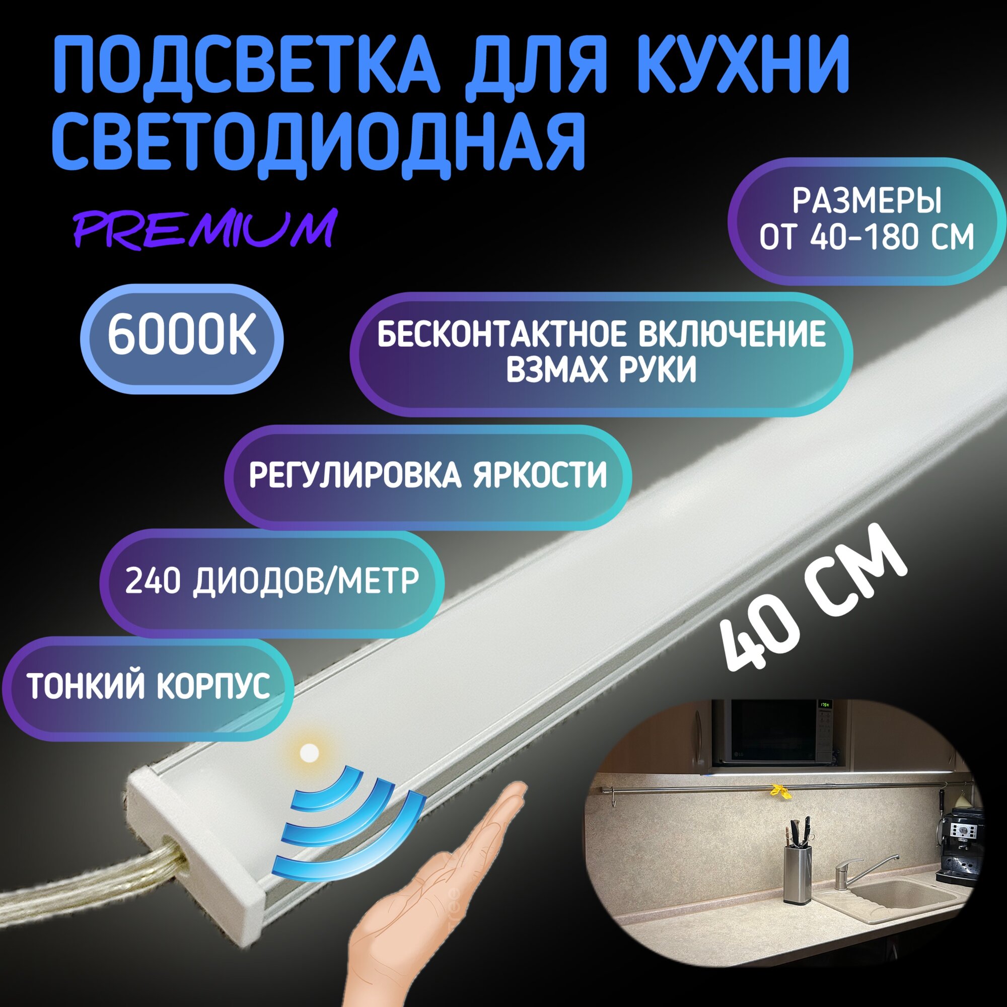Светильник с диммером "Взмах руки", 40 см, холодный белый, прямой интересное: