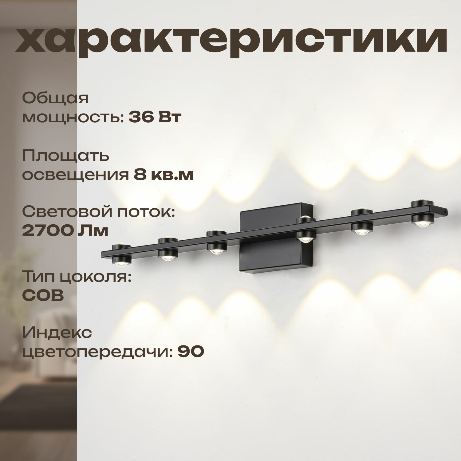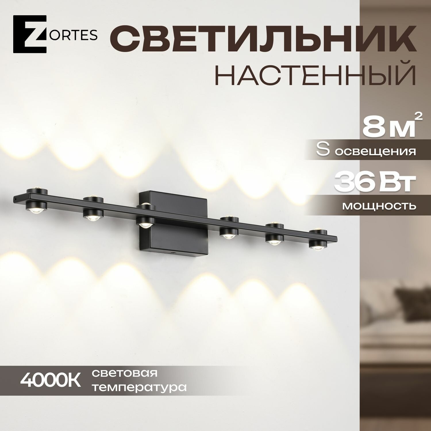 Бра ZORTES SCOUP, Мощность- 36Вт, Тип лампы -COB, Цвет - Чёрный, Длина 620 интересное:
