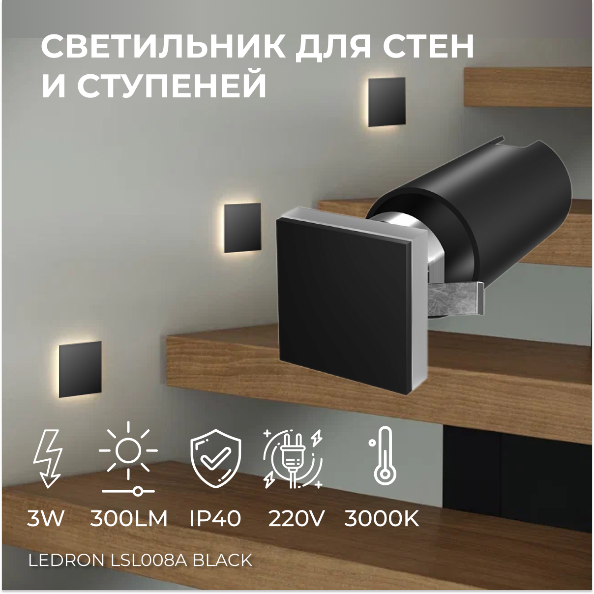 Встраиваемый светодиодный светильник для стен и ступеней Ledron LSL008A Black интересное: