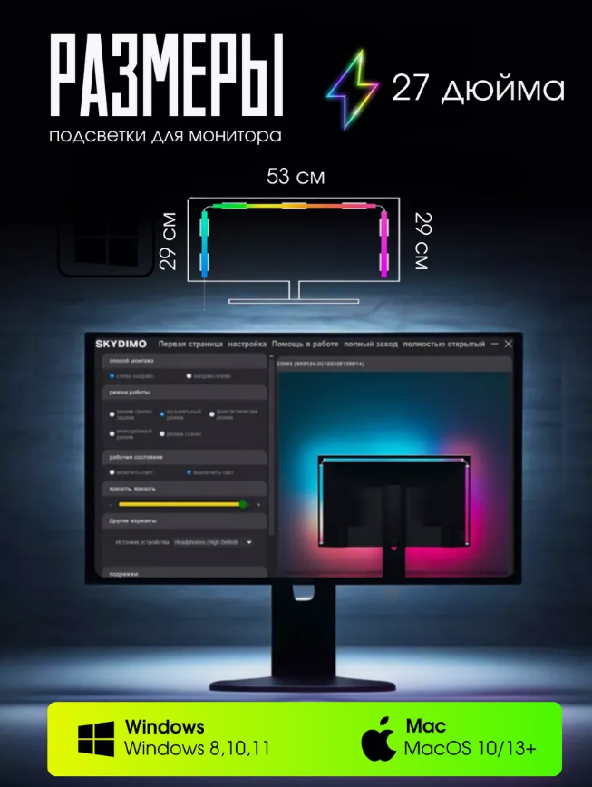 Подсветка для монитора 27" Skydimo, Ambilight, RGB, 3 полосы интересное: