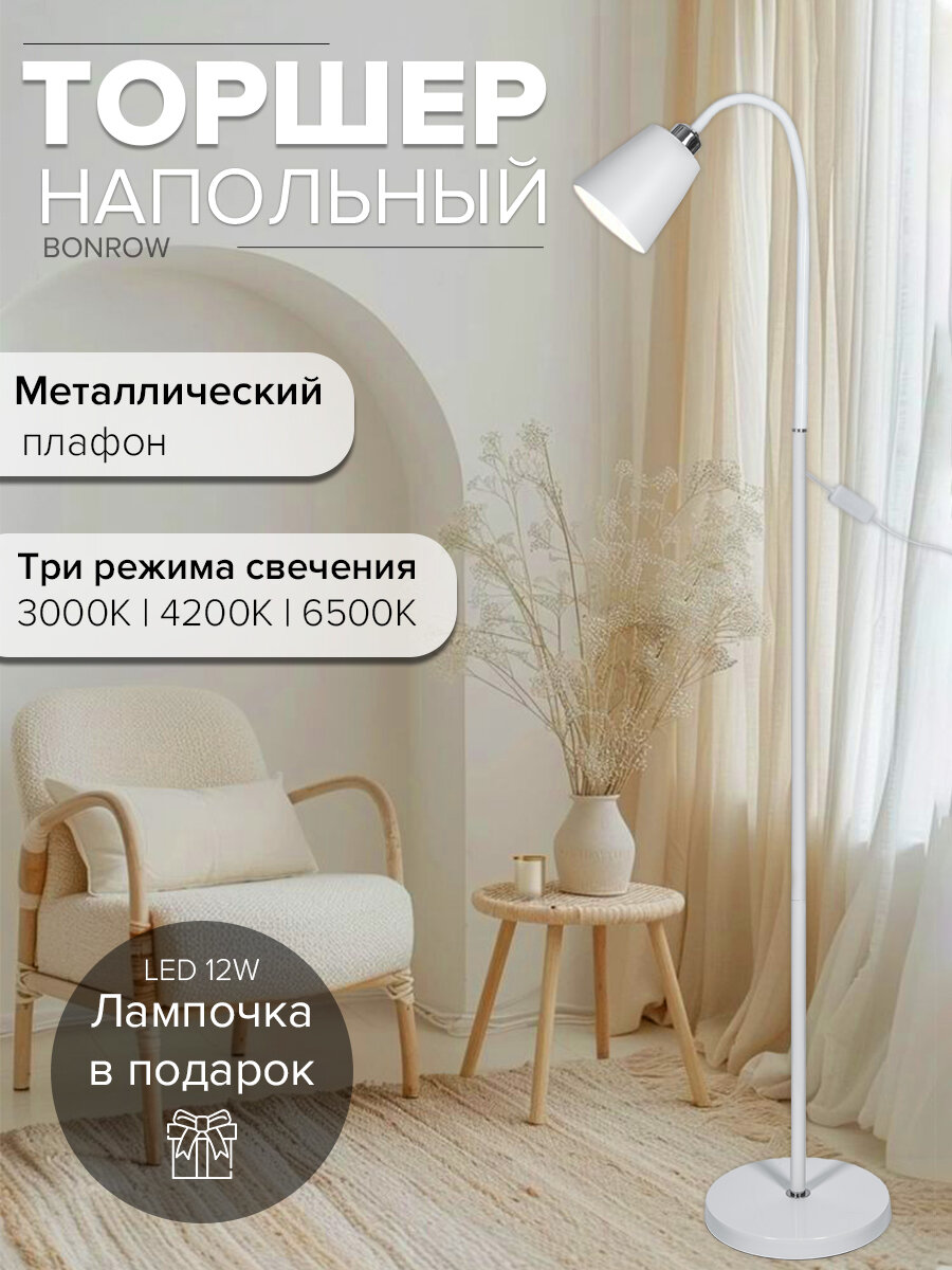 Торшер напольный / Светильник E27 / Лампа для чтения 176 см, белый интересное: