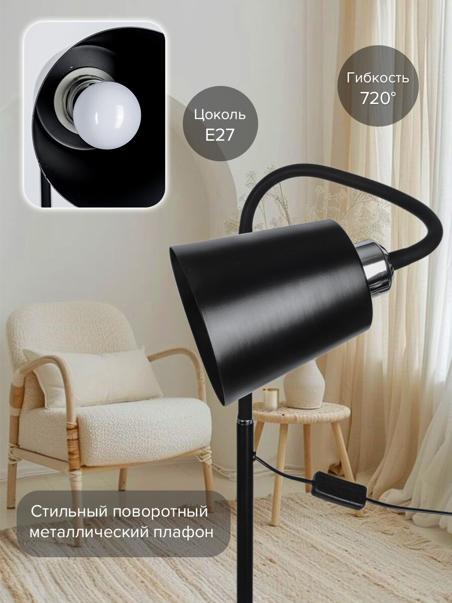 Торшер напольный / Светильник E27 / Лампа для чтения 176 см, черный интересное: