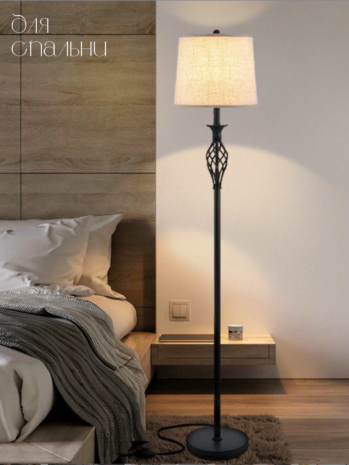 Торшер напольный ЭлисСвет светильник с тканевым абажуром, черный 39329LF/1L BK+WT интересное: