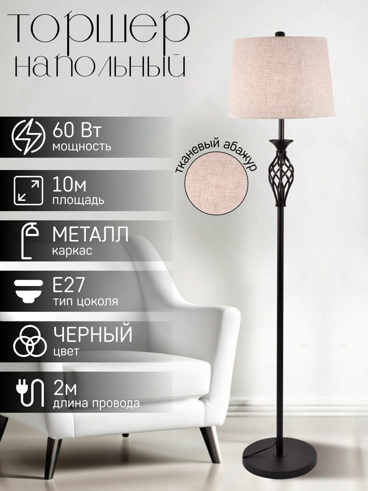 Купить Торшер напольный ЭлисСвет светильник с тканевым абажуром, черный 39329LF/1L BK+WT