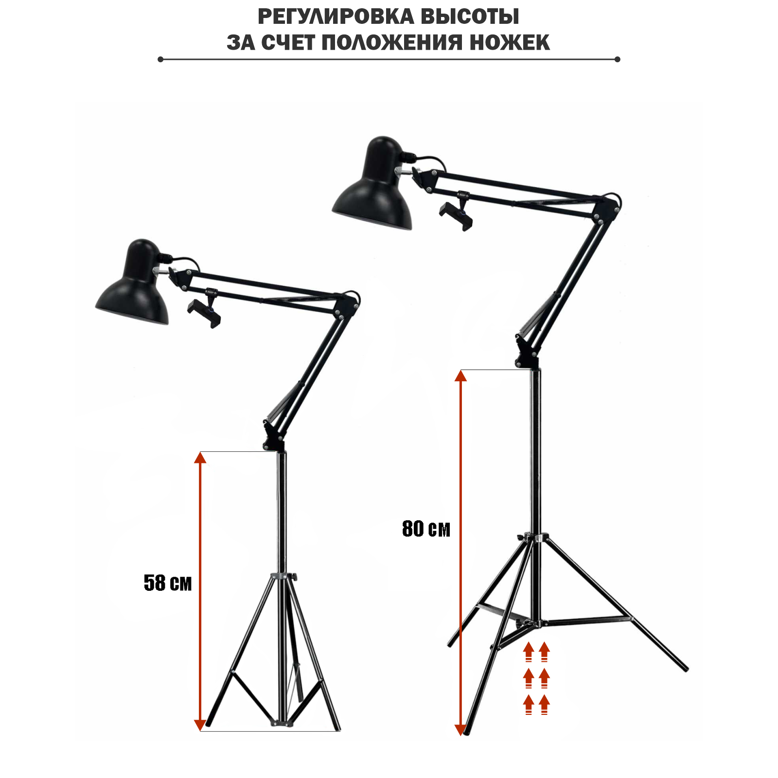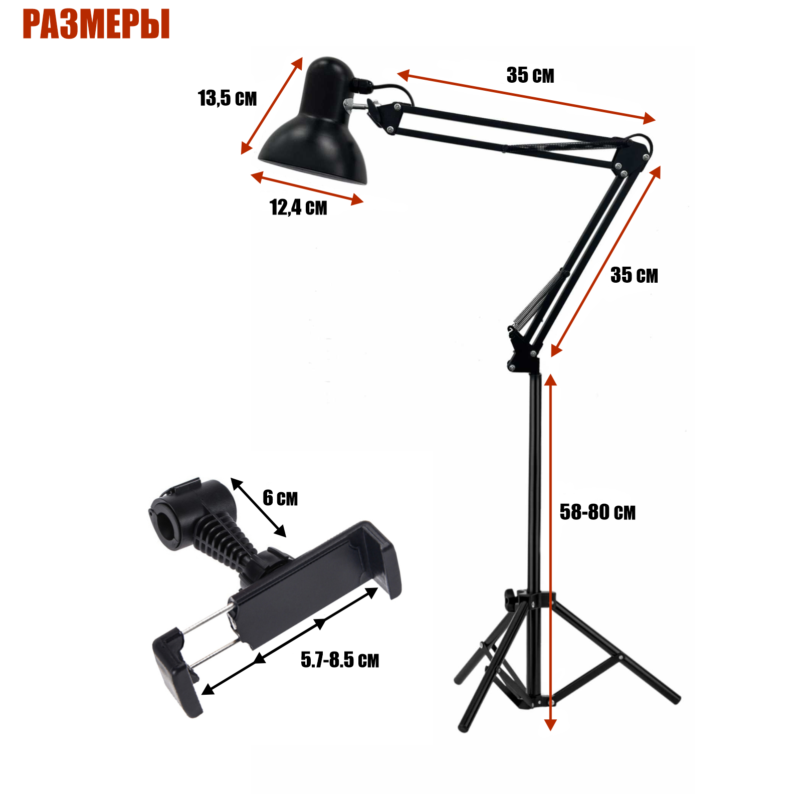 Светильник напольный AB-P-JBHU-DT85, лампа чёрная на пантографе и стойке с держателем телефона до 85 мм интересное: