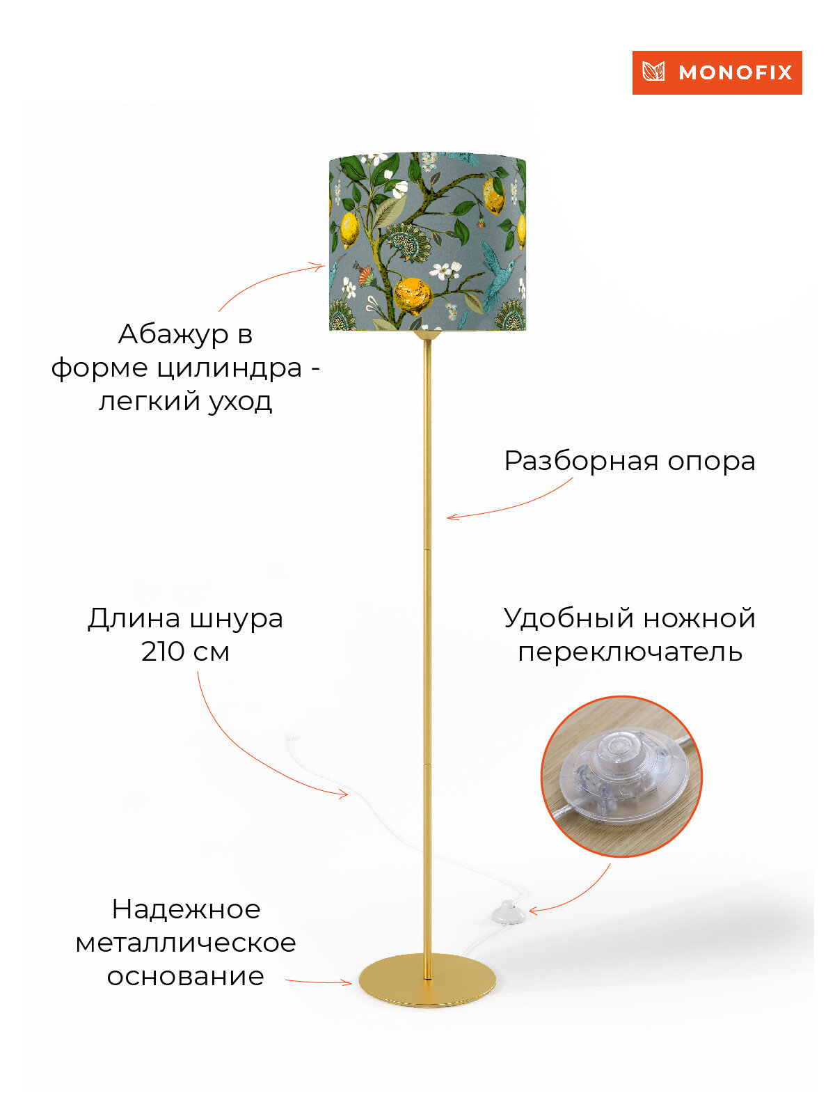 Торшер светильник напольный Лимоны серый с абажуром из велюра интересное: