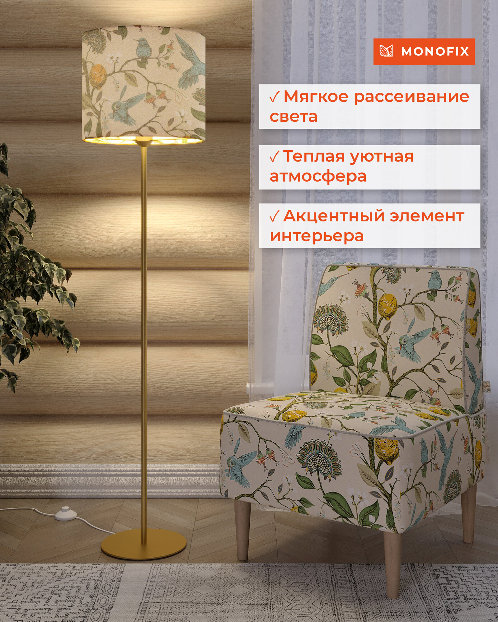 Торшер светильник напольный с абажуром из микровелюра Тропики