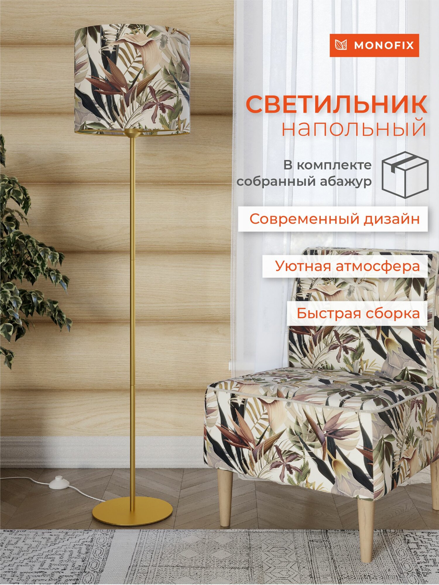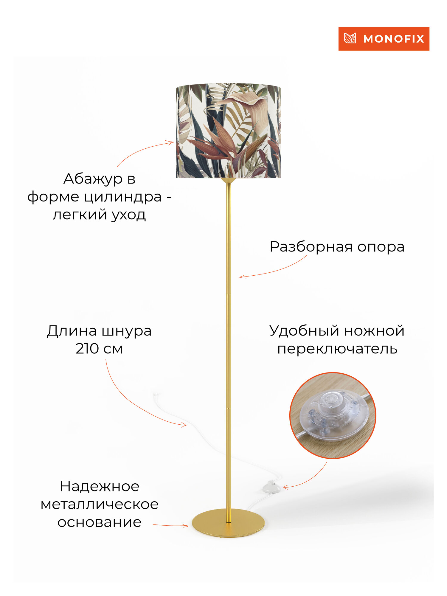 Купить Торшер светильник напольный с абажуром из микровелюра Тропики