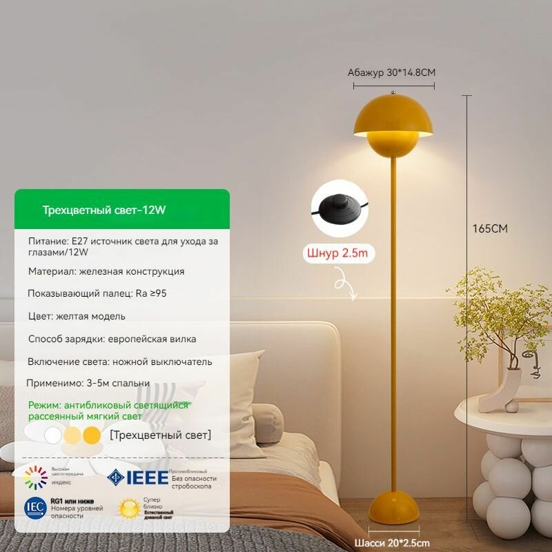 Светильник торшер ,простота,Форма стручка, E27, тёплый белый свет, мощность 40 Вт, жёлтый цвет интересное: