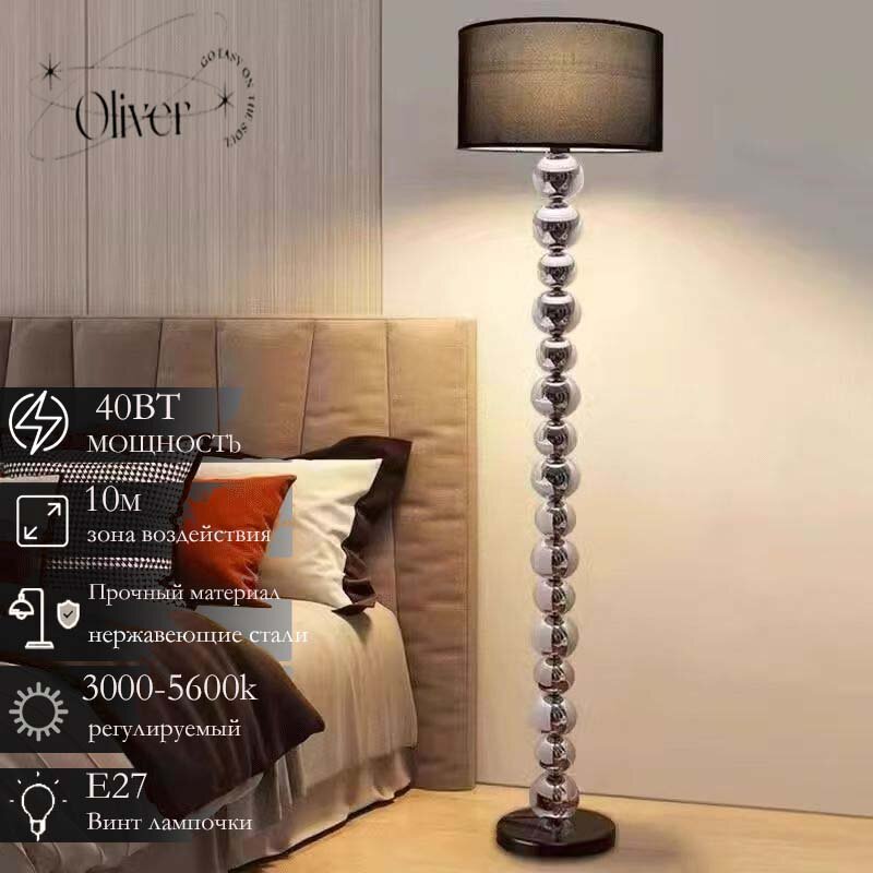 Торшер“Oliver Light”, минимализм, регулировка цветовой температуры, 1 лампа,Нержавеющая сталь,Черный абажур интересное: