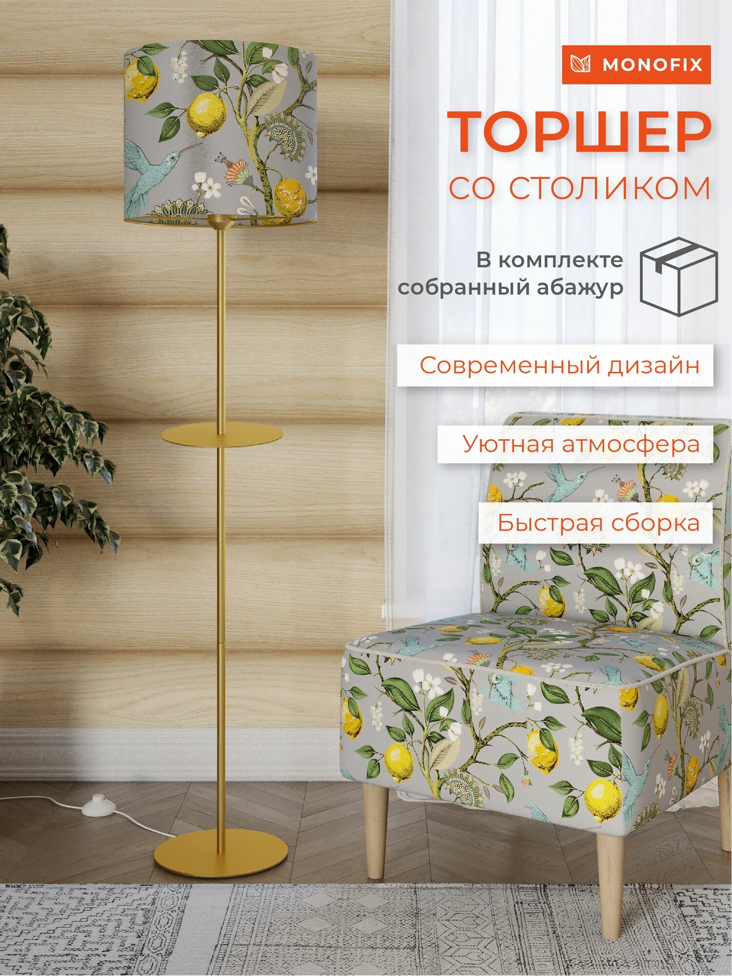 Торшер светильник напольный со столиком Лимоны светло-серый с абажуром из велюра интересное: