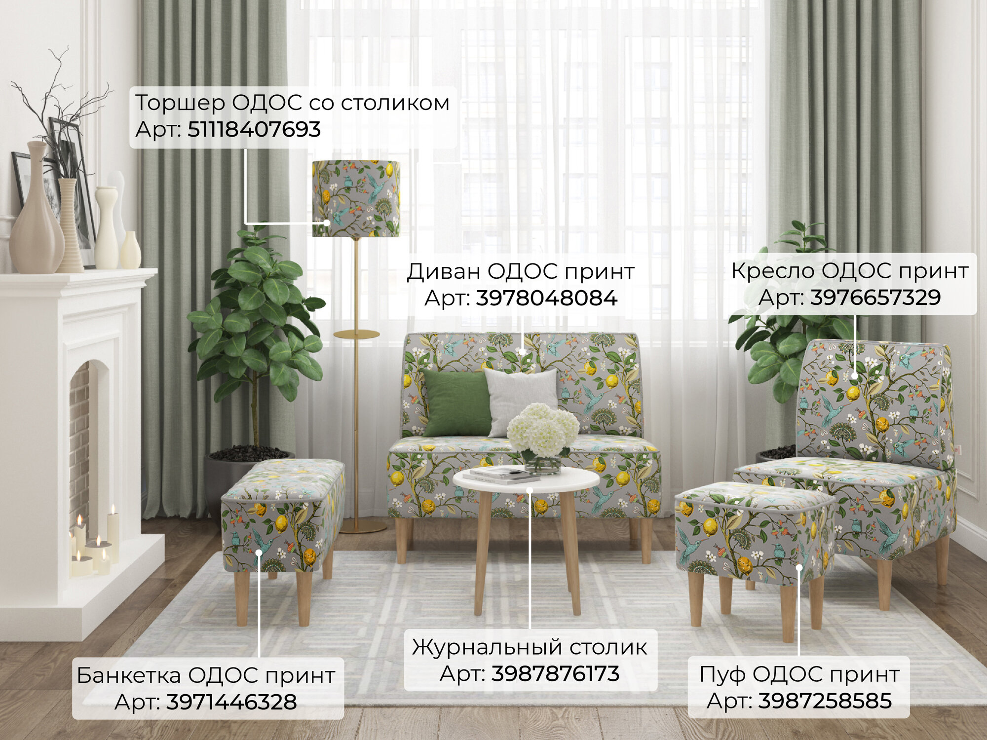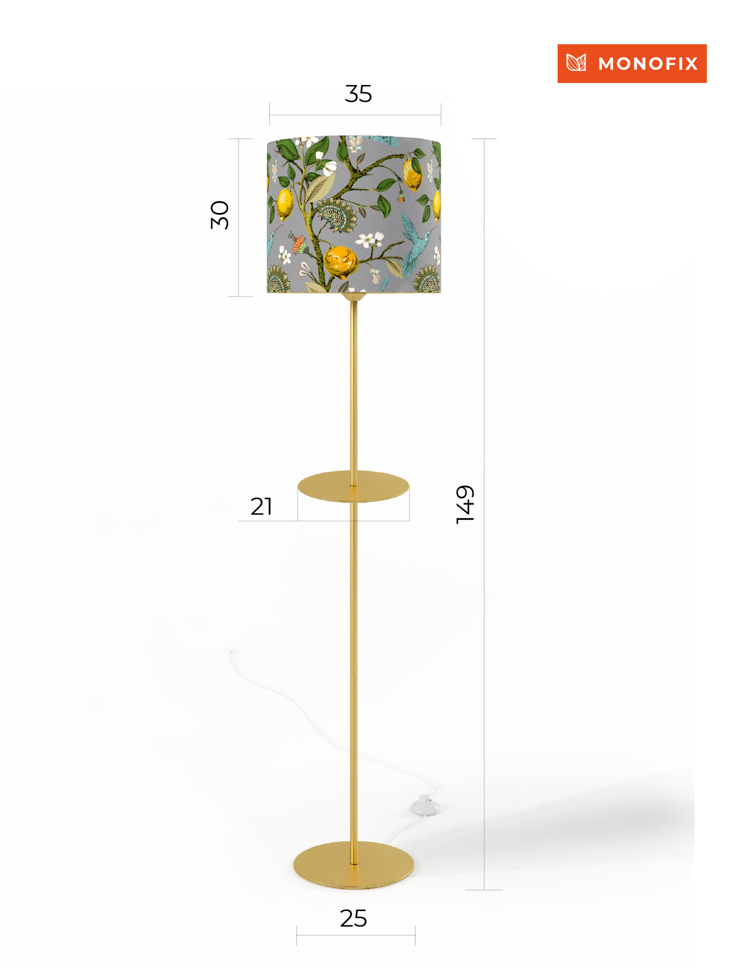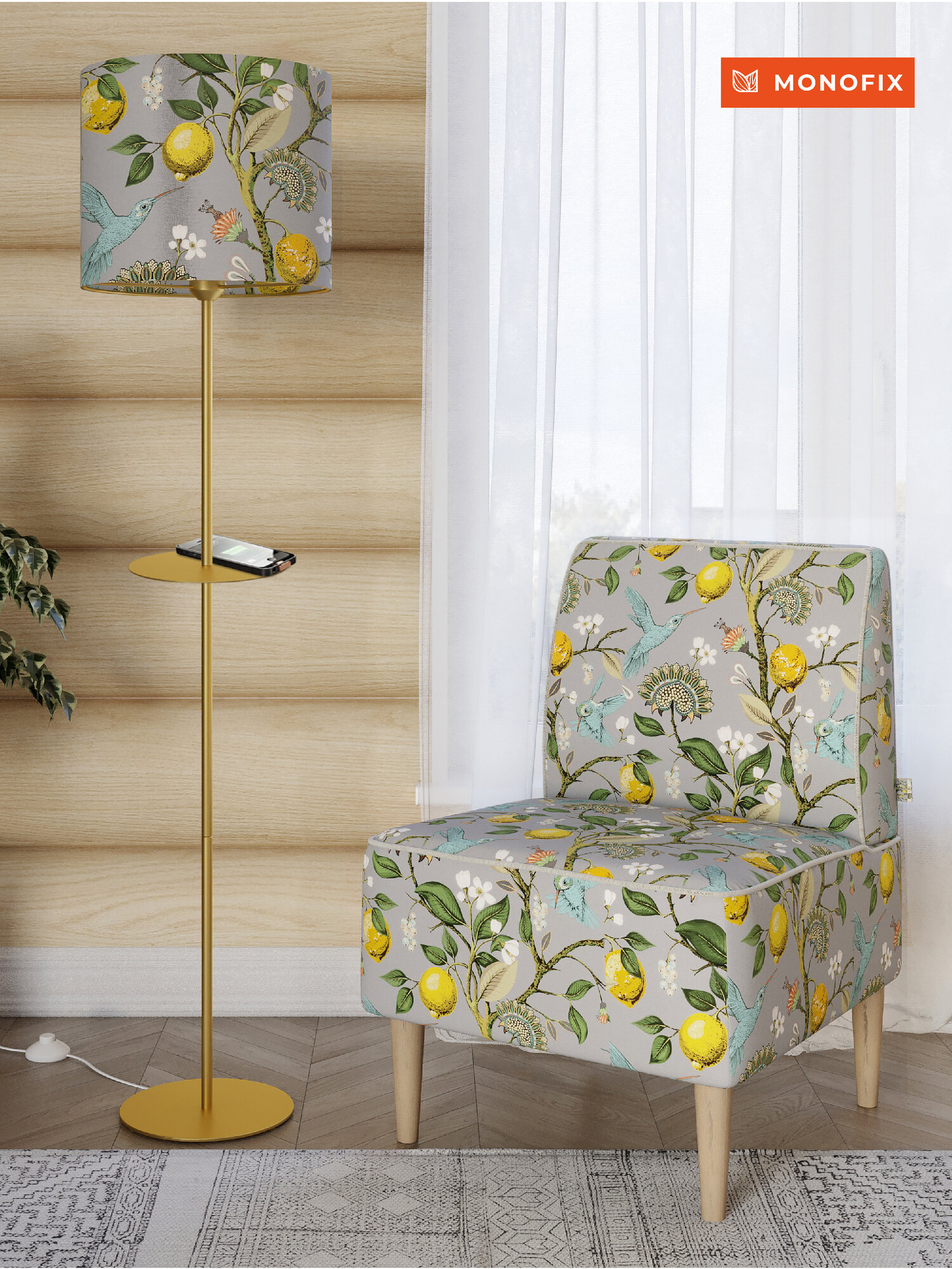 Купить Торшер светильник напольный со столиком Лимоны светло-серый с абажуром из велюра