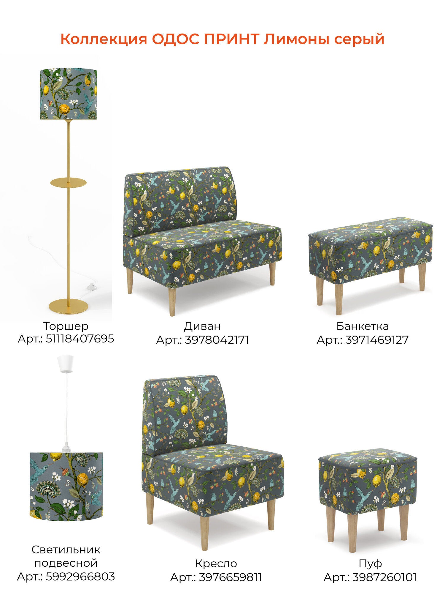 Купить Торшер светильник напольный со столиком Лимоны серый с абажуром из велюра