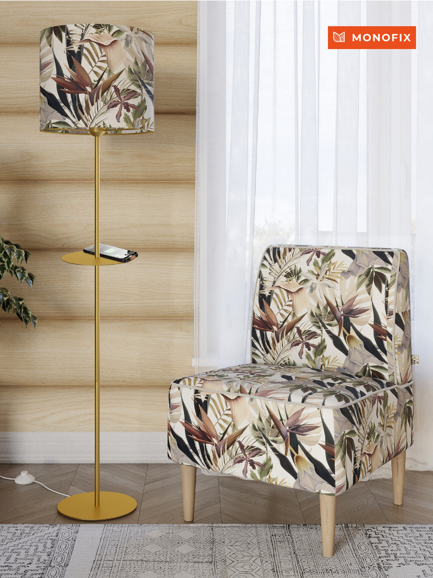 Купить Торшер светильник напольный со столиком Тропики с абажуром из велюра