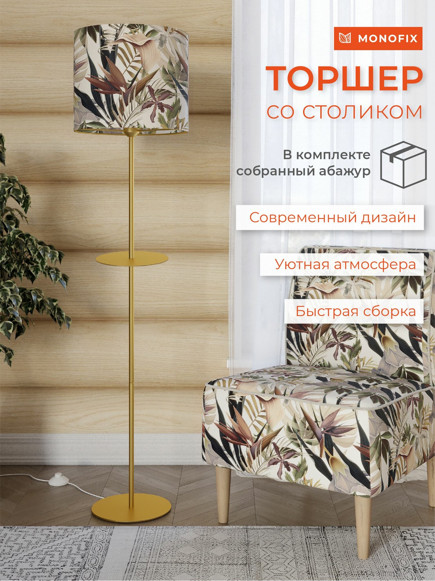 Торшер светильник напольный со столиком Тропики с абажуром из велюра интересное: