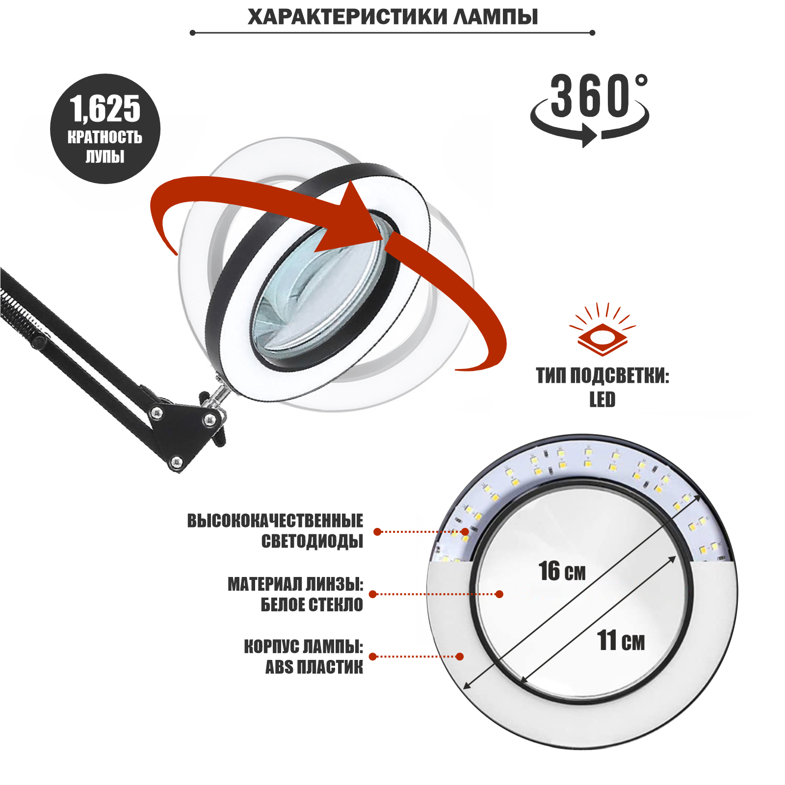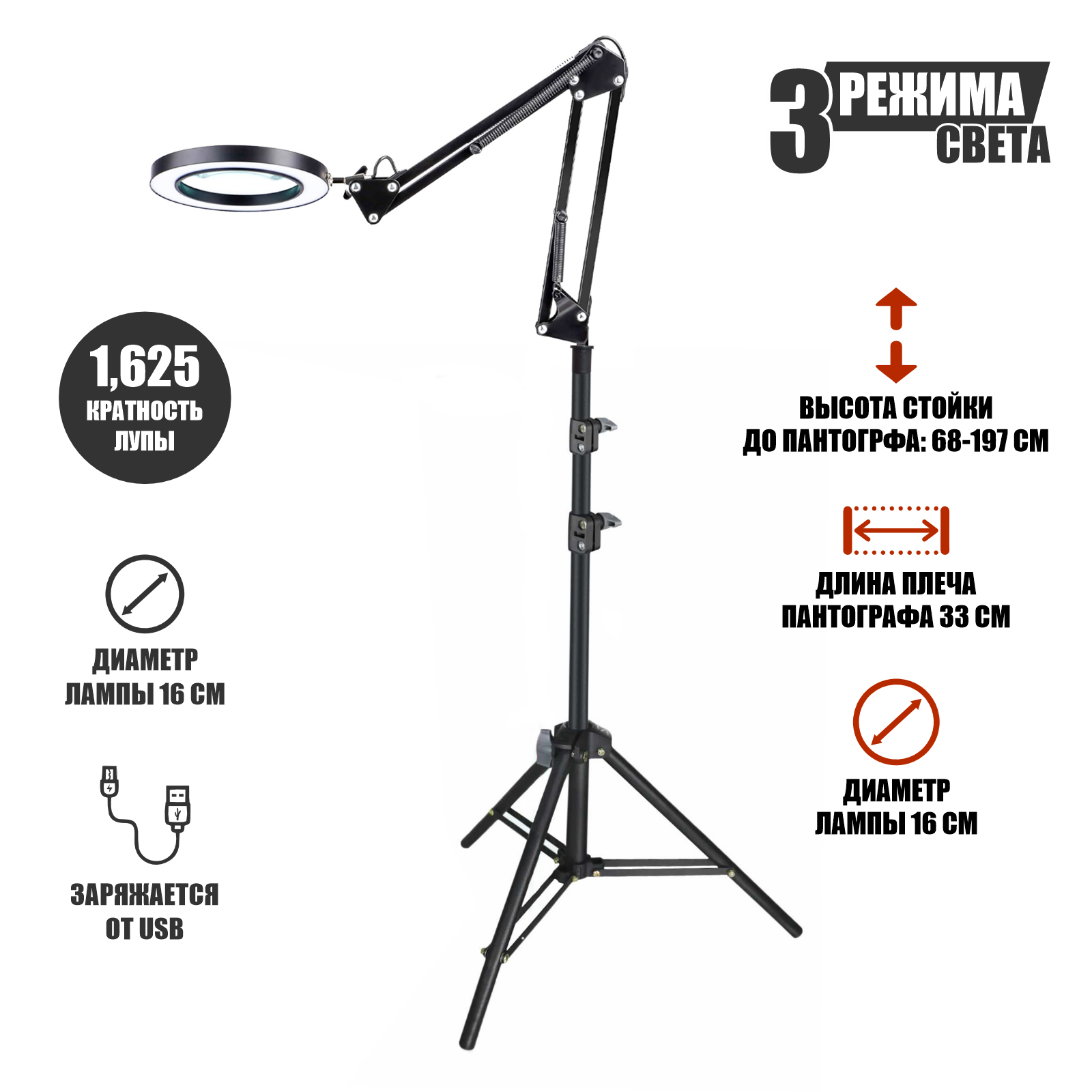 Напольная лампа LN-33 на усиленном штативе LS, светодиодная, черная интересное: