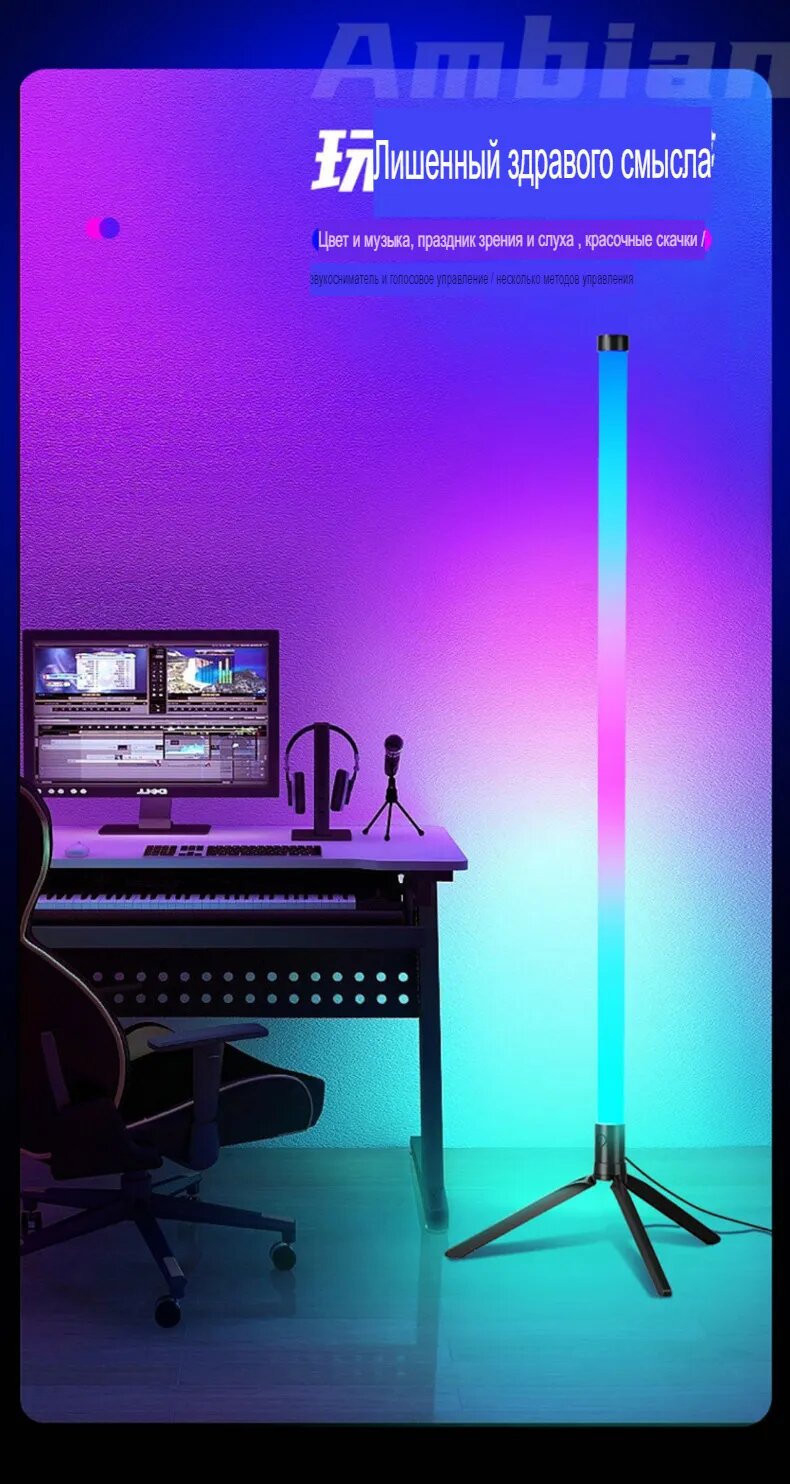 Торшер напольный 2 штуки LED, 115 см, датчик на звук, пульт, приложение, стильный, хай-тек 2 шт. интересное: