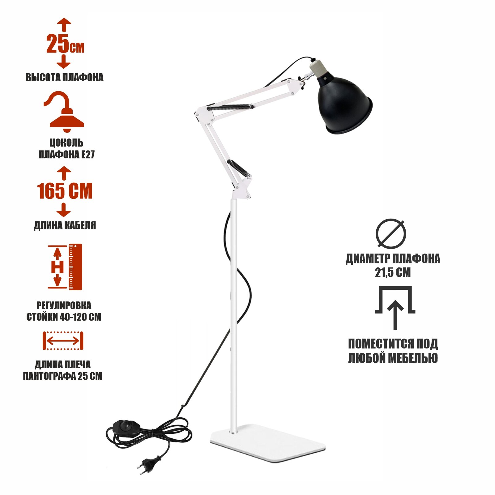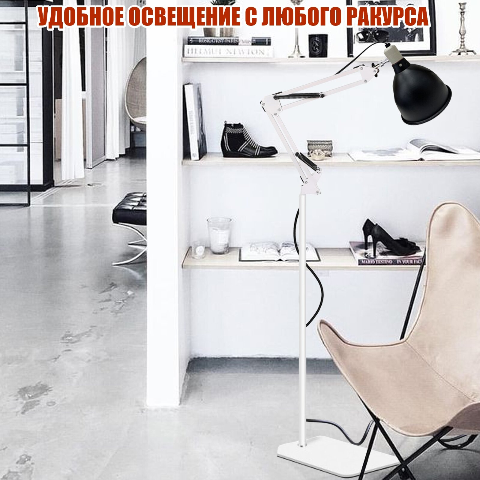 Светильник LST215D-NS-02W с диммером, напольный белый торшер в стиле лофт интересное: