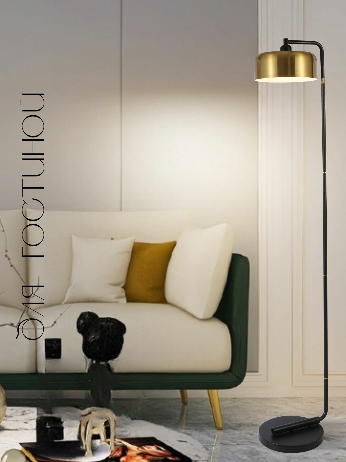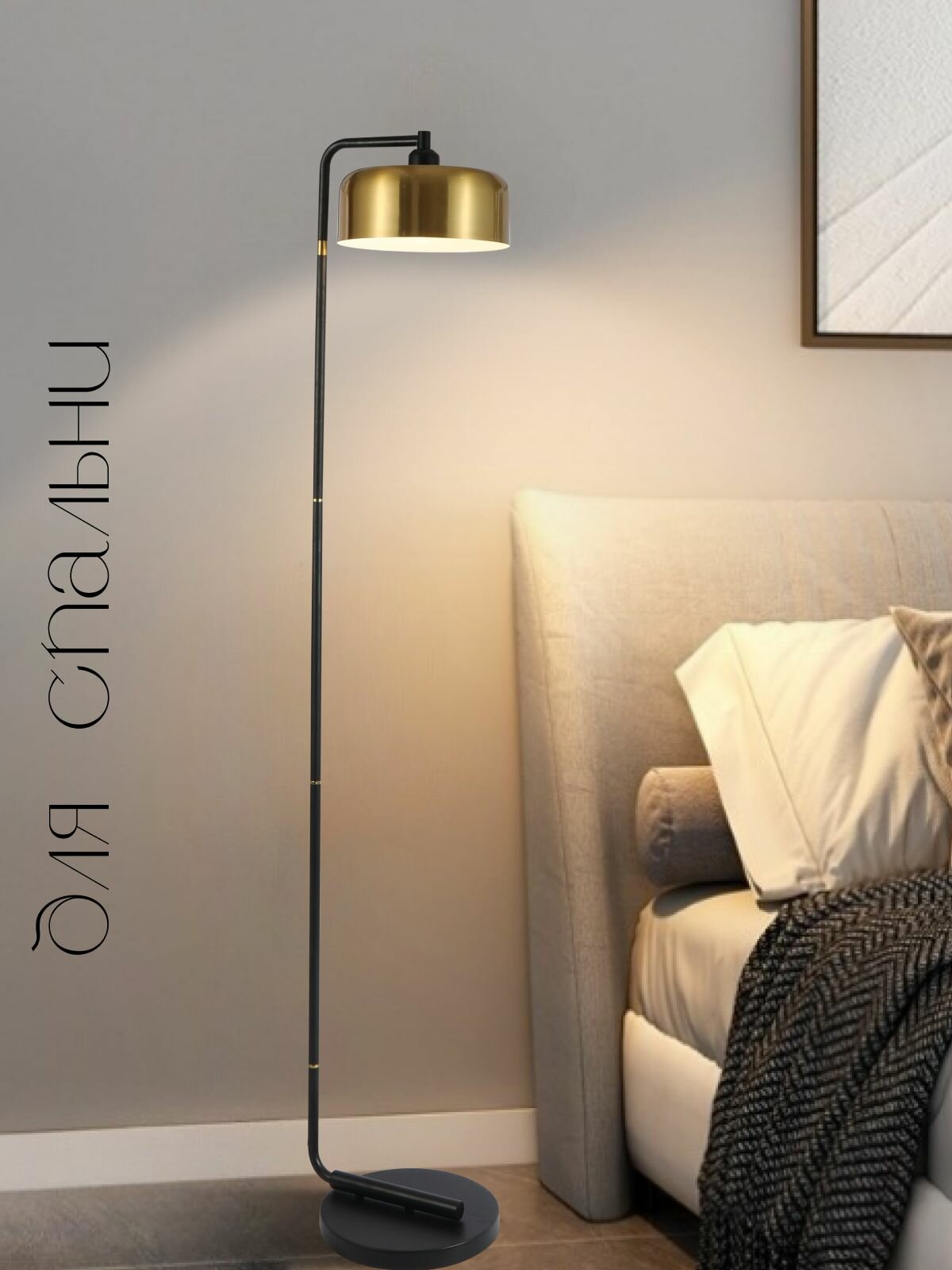 Торшер напольный ЭлисСвет светильник с металлическим абажуром, черный/золотой 5877LF/1L GD+BK интересное:
