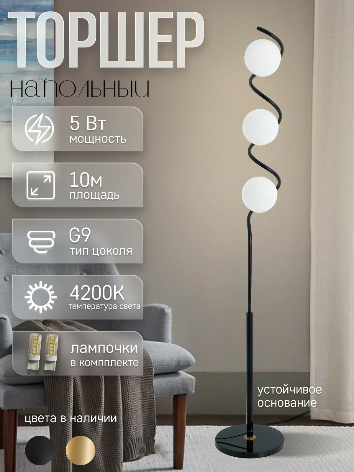 Торшер напольный ЭлисСвет светильник с круглыми лампами, черный 10125LF/3L BK интересное: