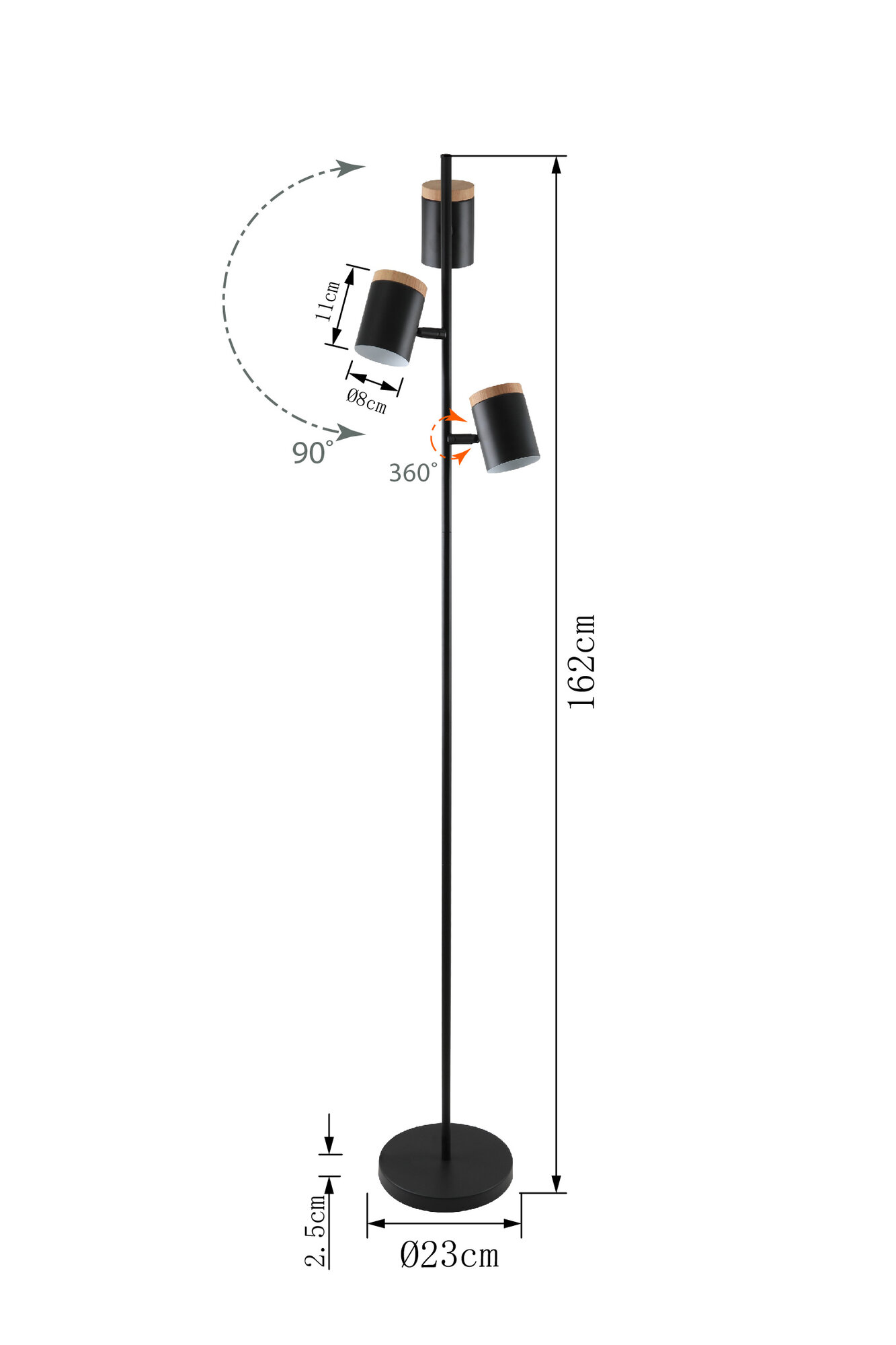 Купить Торшер с тремя лампами напольный металлический, светильник напольный, черный