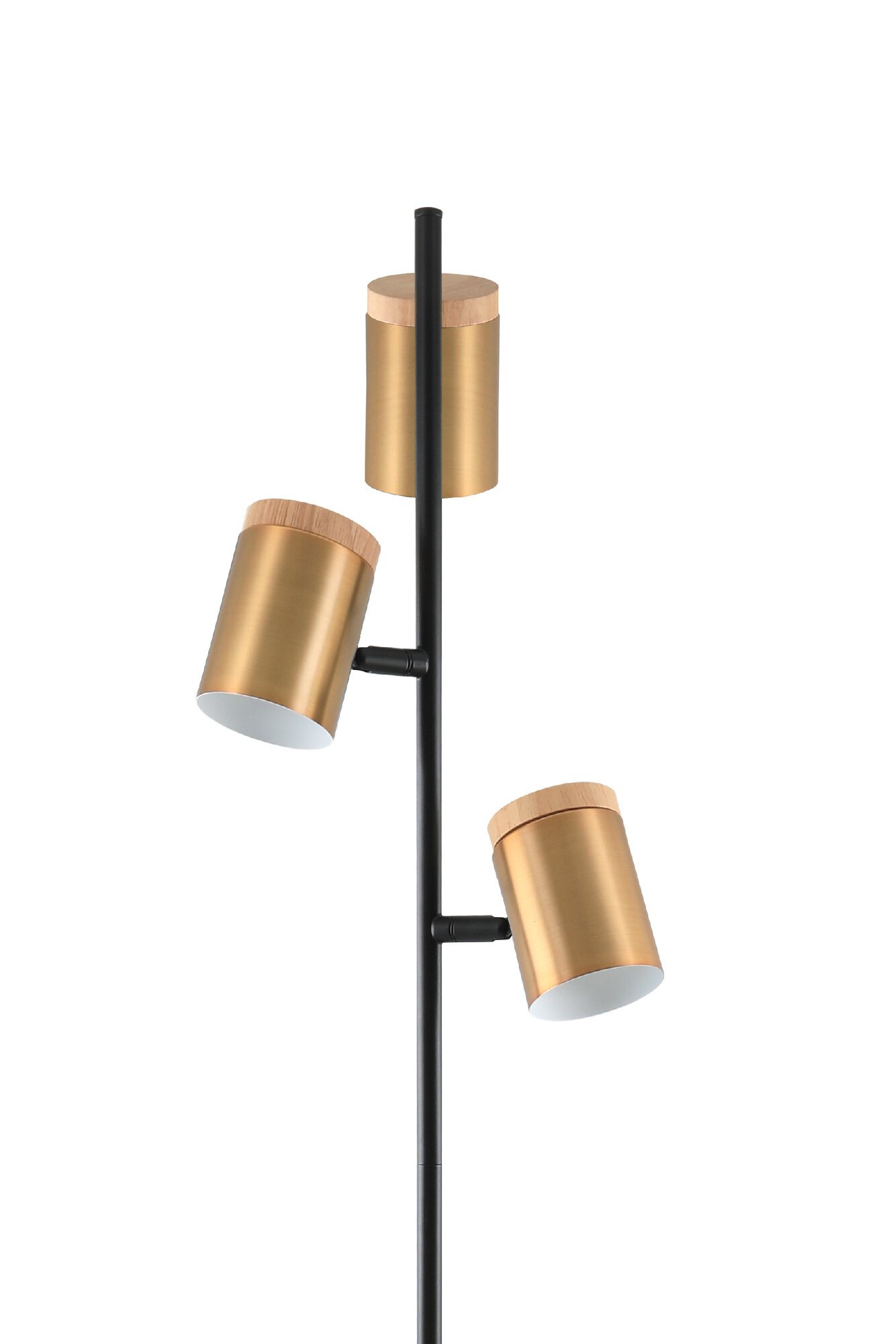 Купить Торшер с тремя лампами напольный металлический, светильник напольный, латунь, черный, дерево