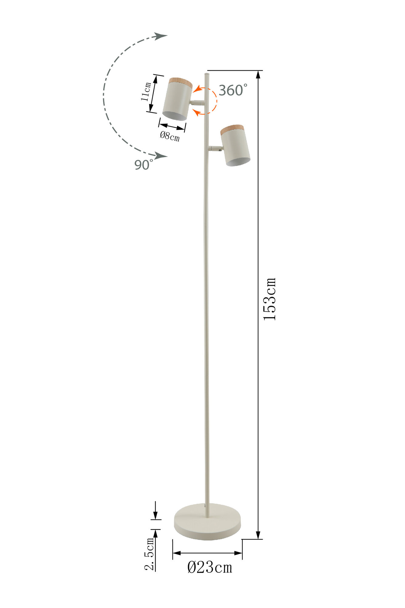 Купить Торшер с двумя лампами напольный металлический, светильник напольный, бежевый