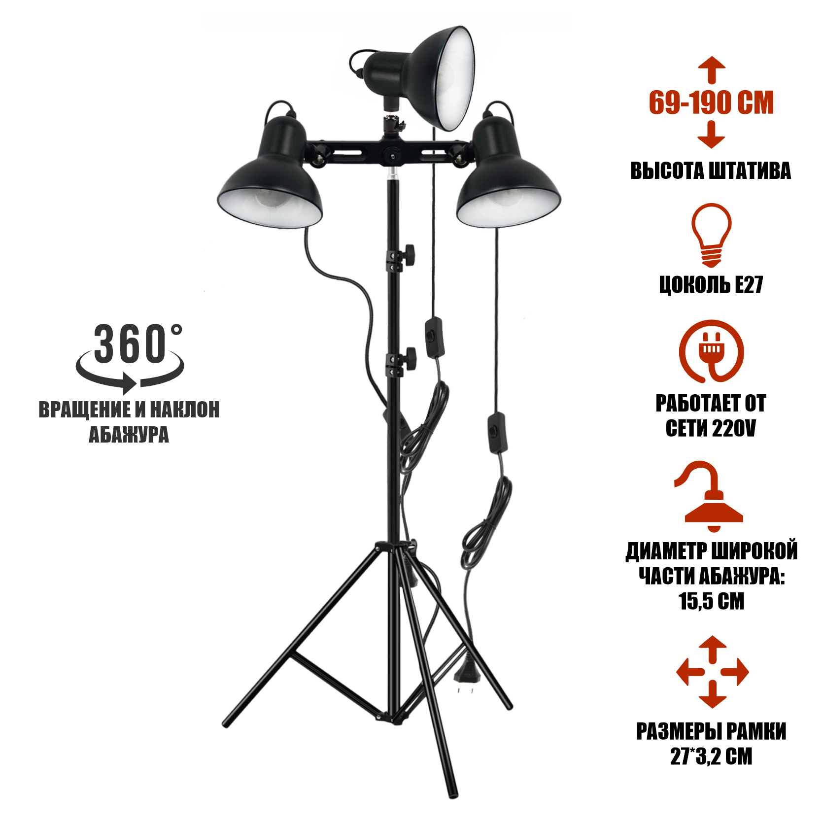 Купить Напольный светильник JBMB-3 с 3 средними черными абажурами, торшер с регулировкой угла наклона