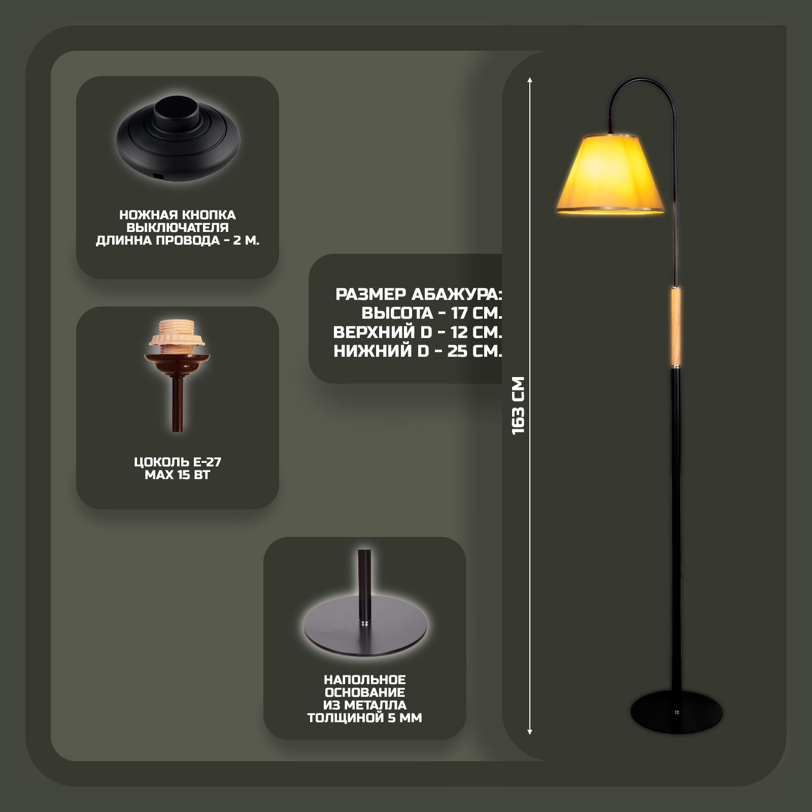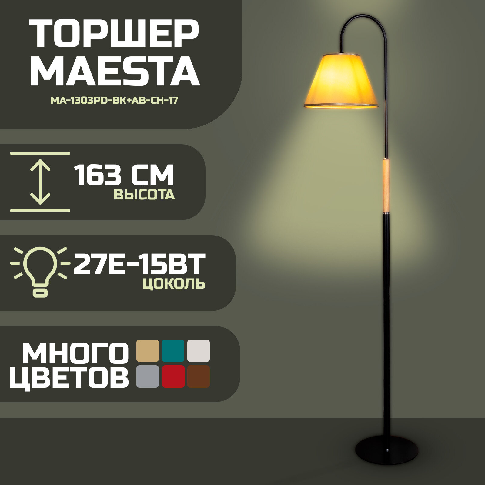 Напольный светильник, торшер. Черный/шампань. MA-1303PD-BK+AB-CH-17, E27, 15 Вт. интересное: