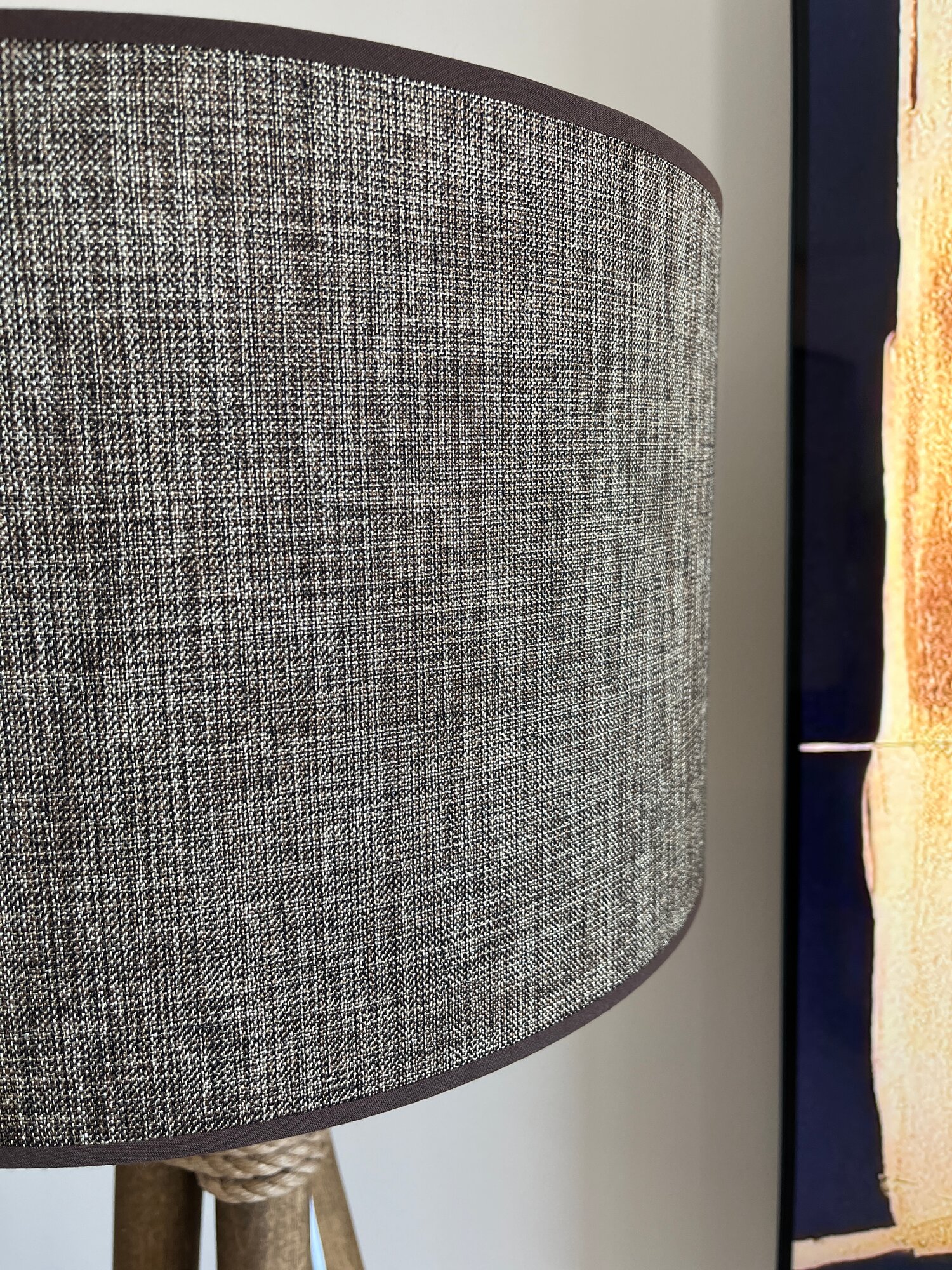 Торшер напольный деревянный, цвет Орех, бежевый лен абажур, стиль сканди, высота 155 см, ручная работа