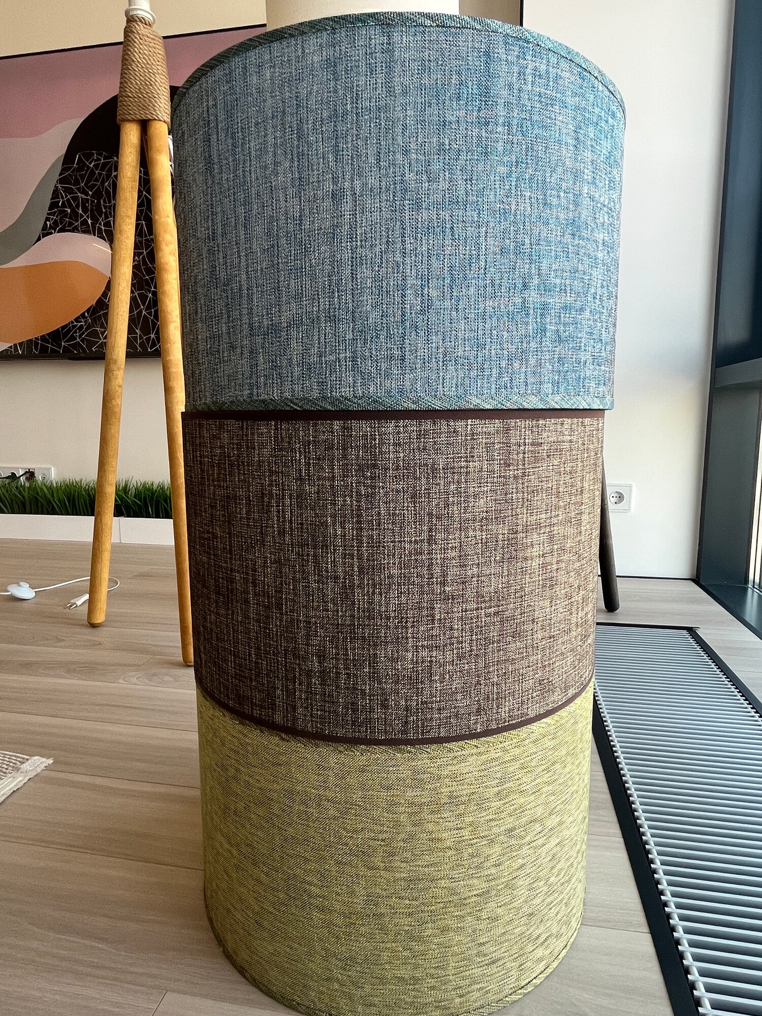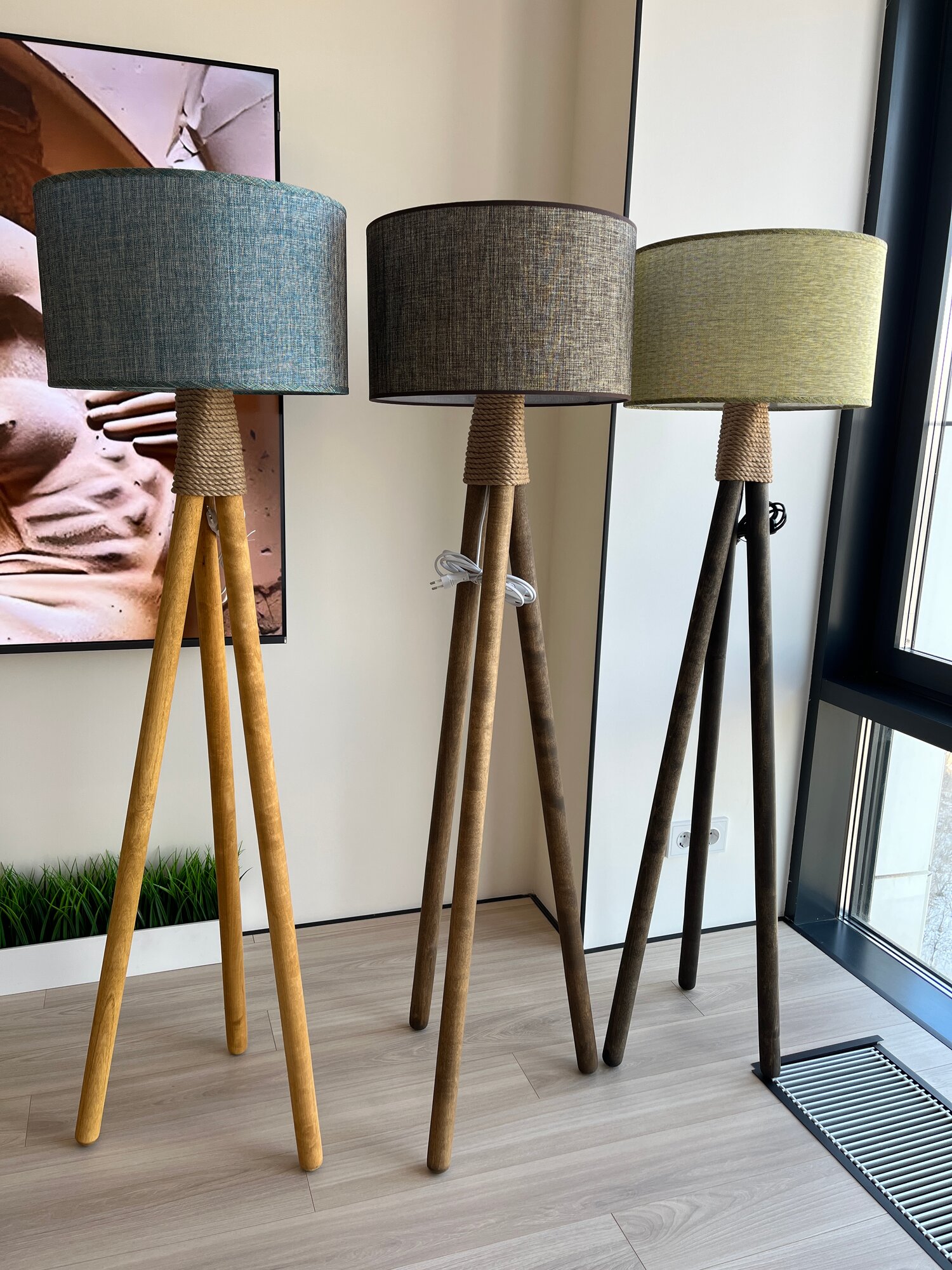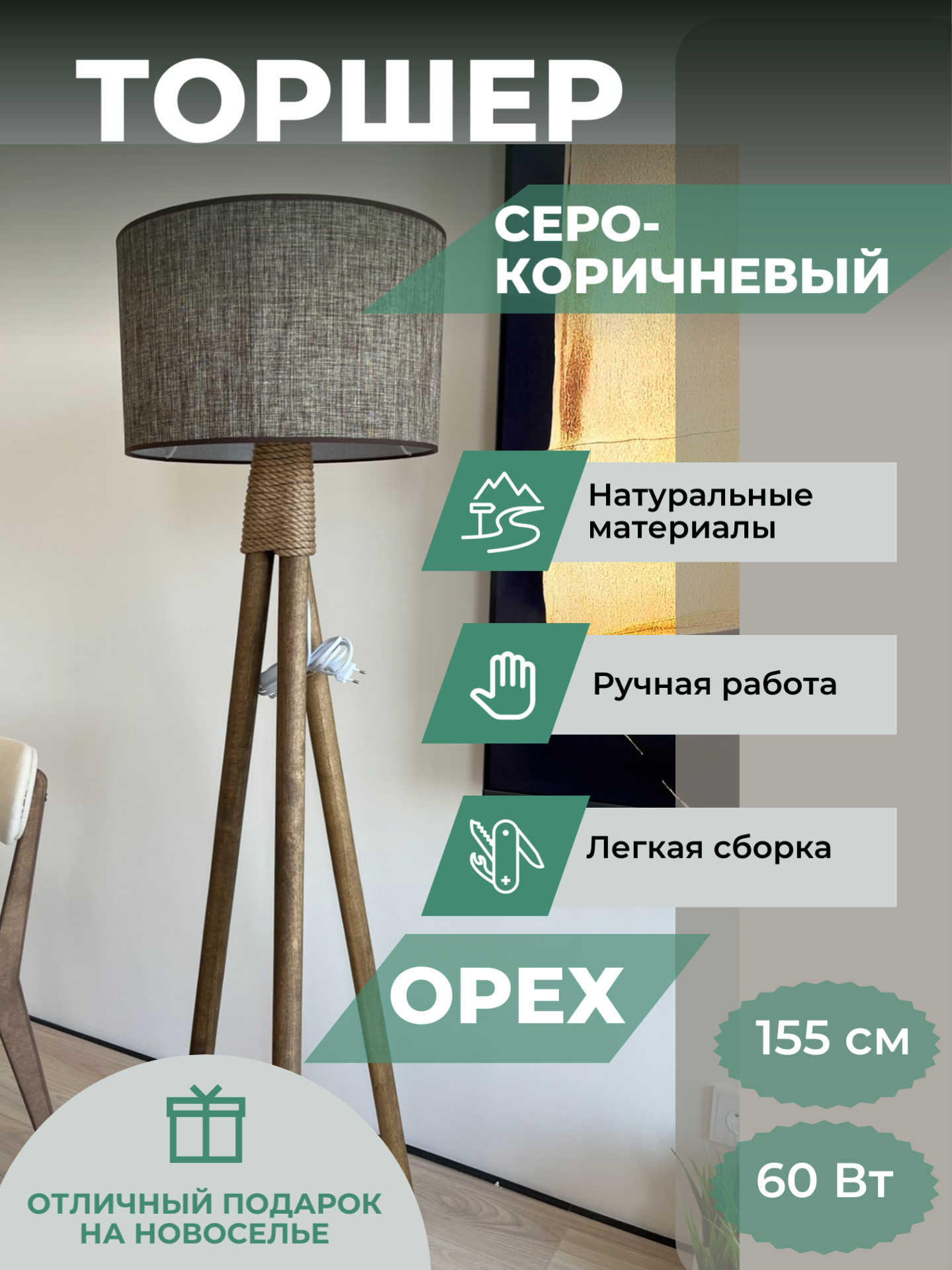 СохранитьТоршер напольный деревянный, цвет Орех, серо-коричневый абажур, стиль сканди, высота 155 см, ручная работа интересное: