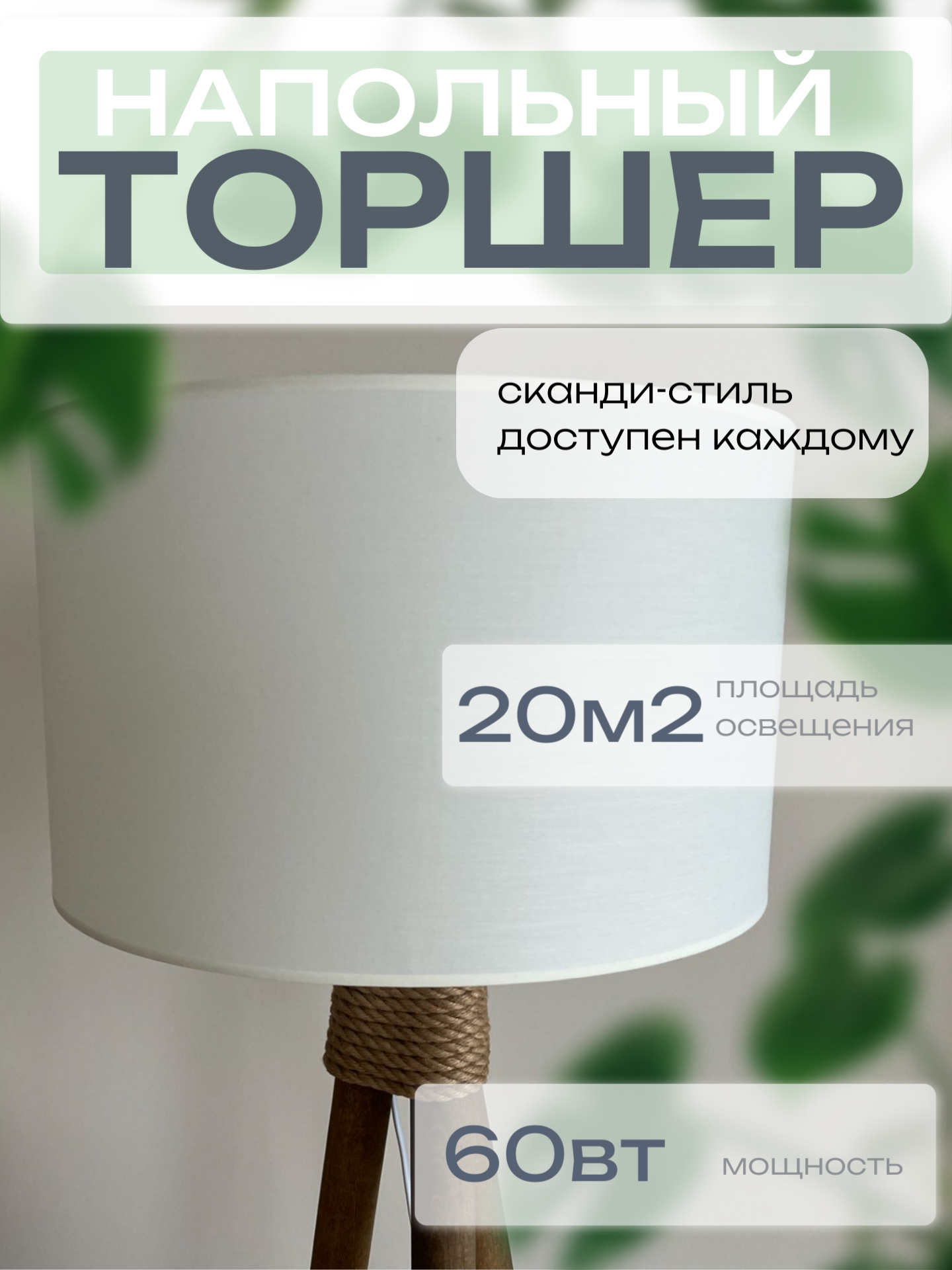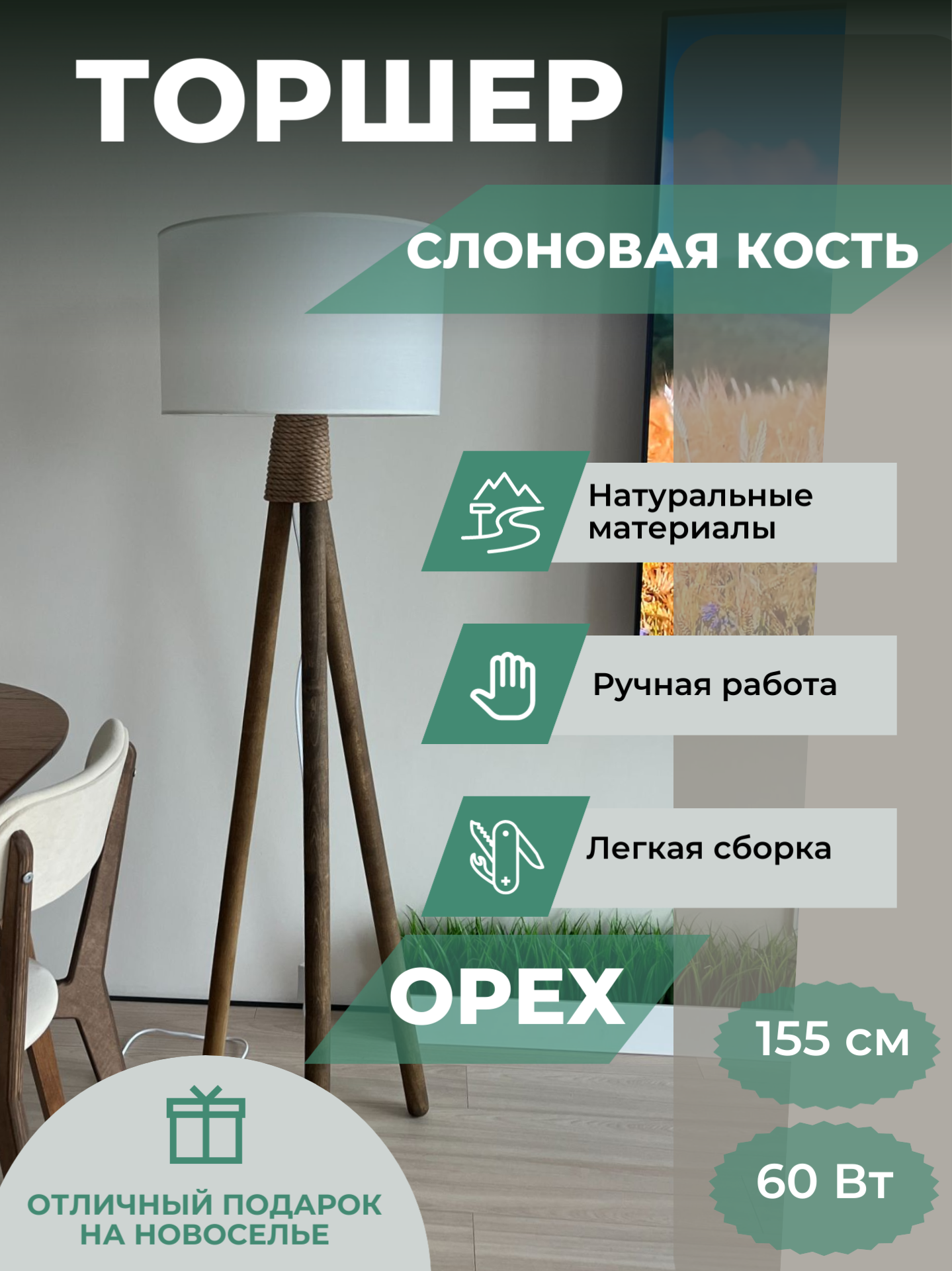 СохранитьТоршер напольный деревянный, цвет Орех, слоновая кость абажур, стиль сканди, высота 155 см, ручная работа интересное: