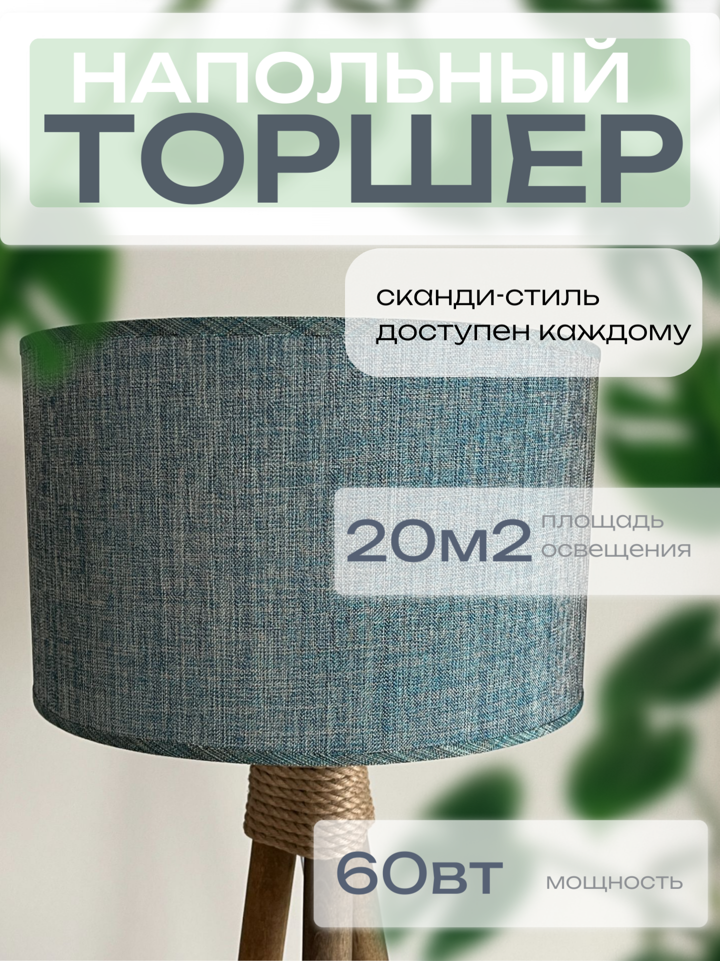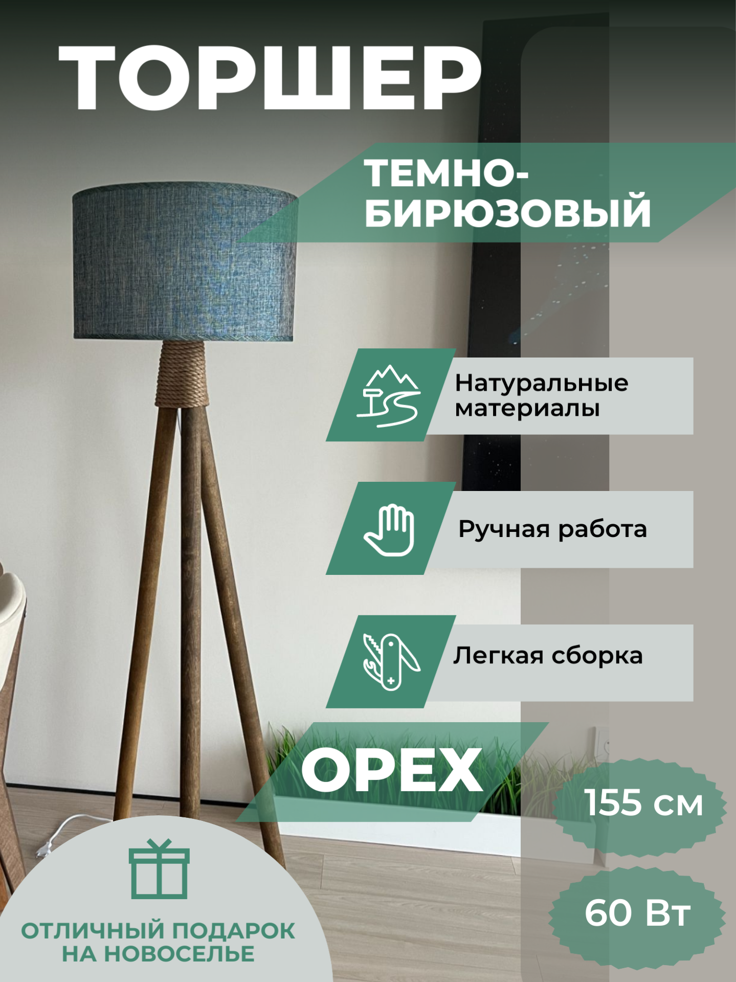 СохранитьТоршер напольный деревянный, цвет Орех, темно-бирюзовый абажур, стиль сканди, высота 155 см, ручная работа интересное: