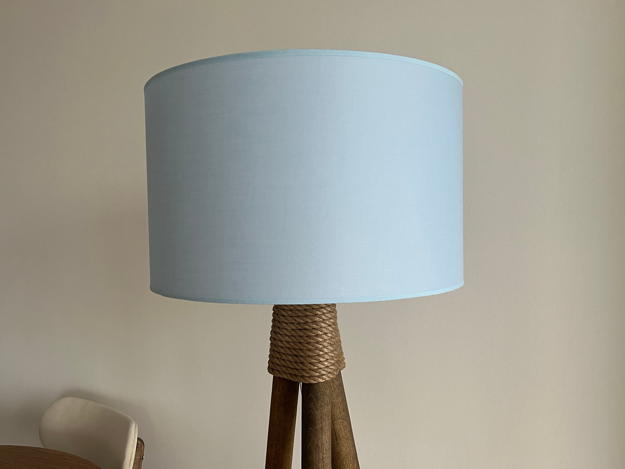 СохранитьТоршер напольный деревянный, цвет Орех, голубой абажур, стиль сканди, высота 155 см, ручная работа интересное: