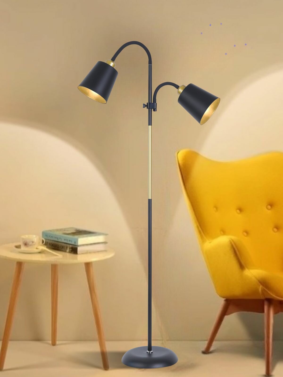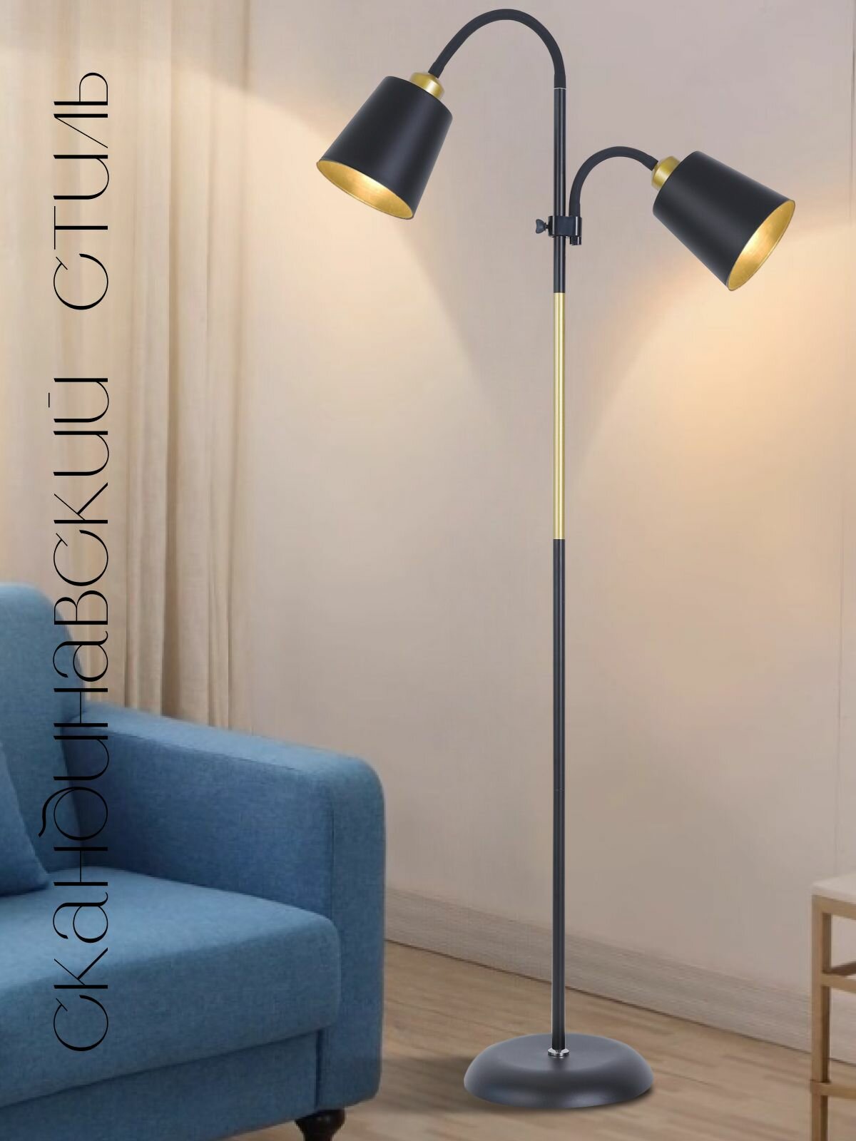 Торшер напольный ЭлисСвет светильник с двумя поворотными лампами, регулируемый, золотой/черный 931LF/2L BK