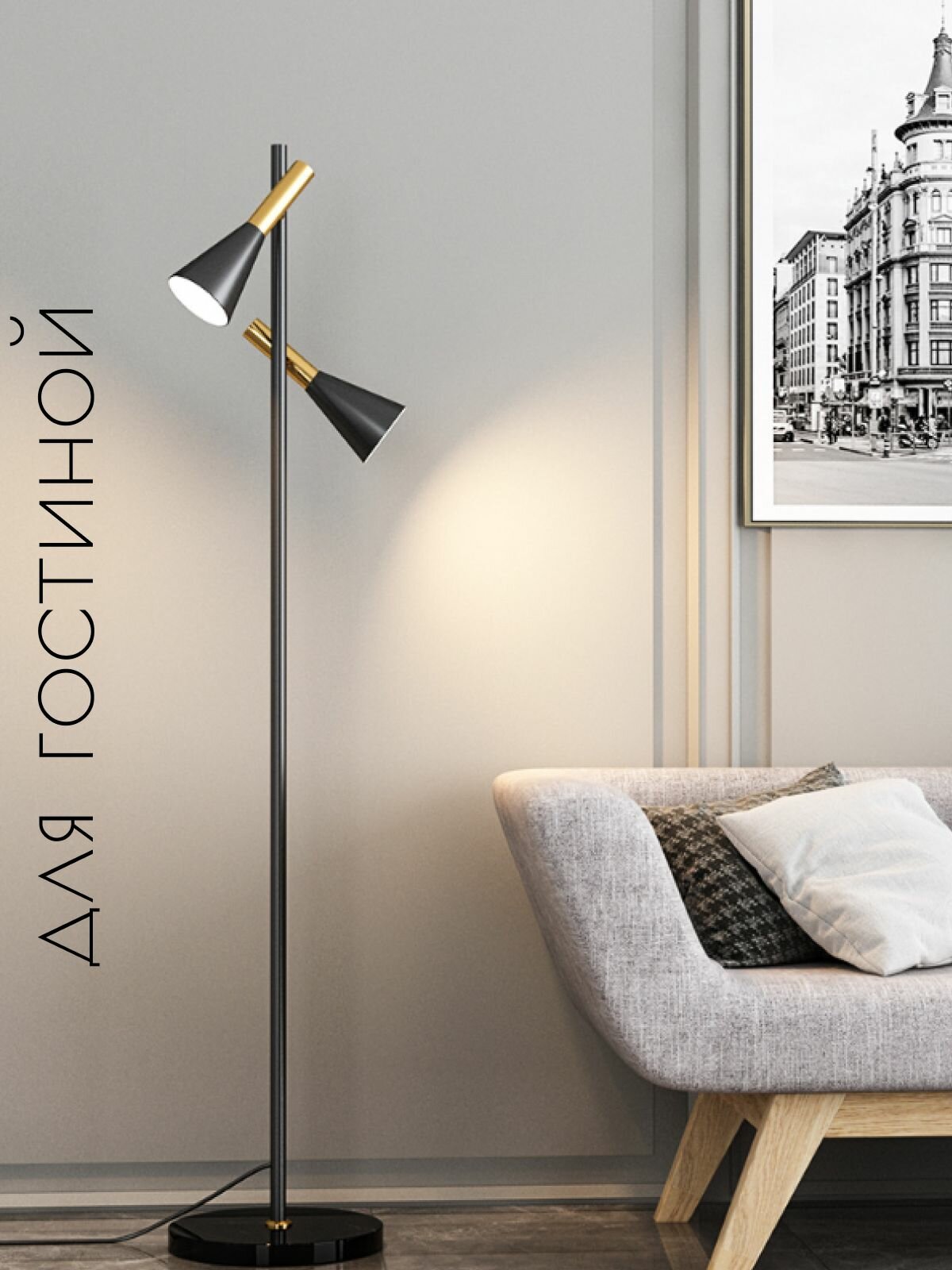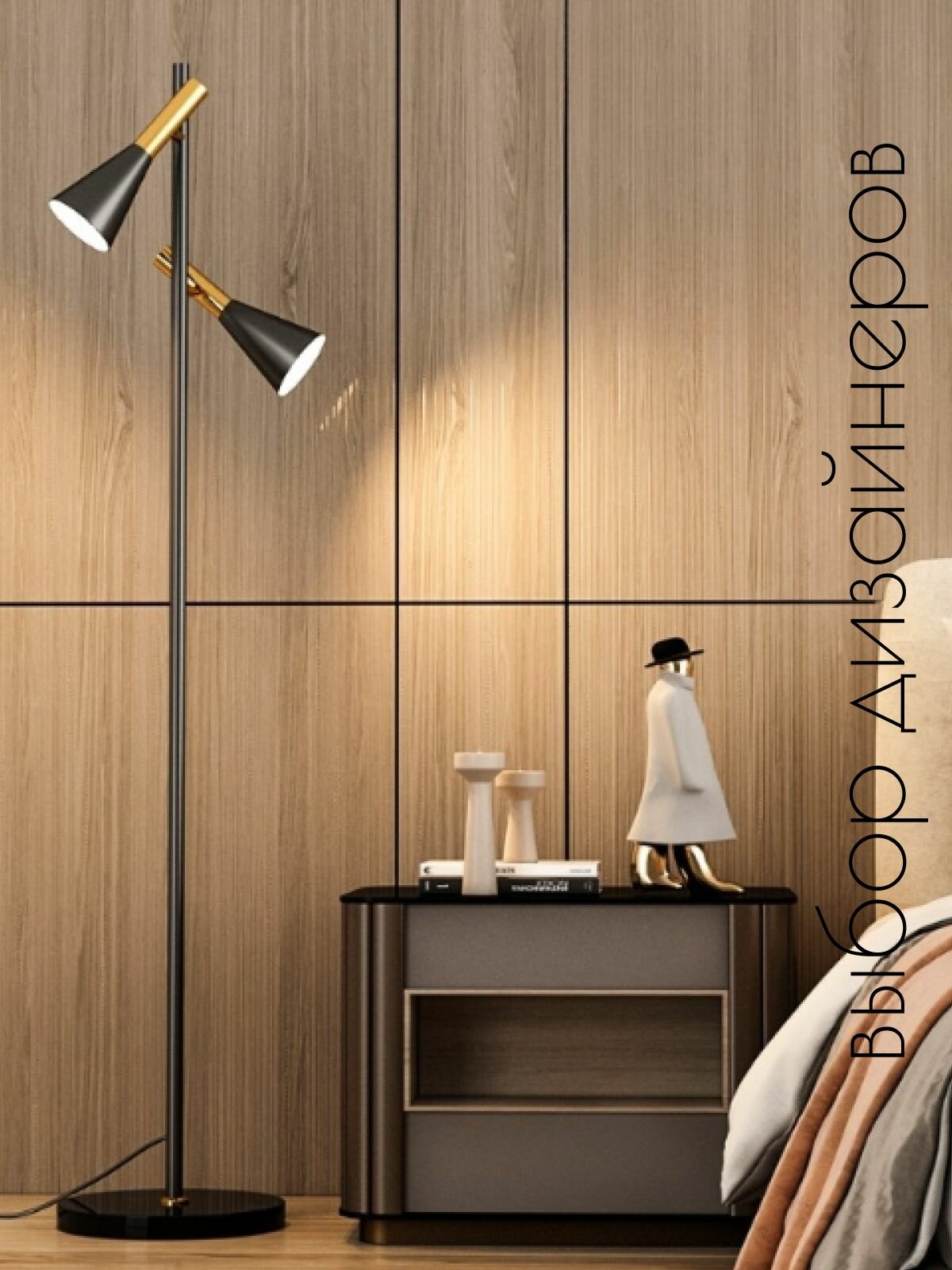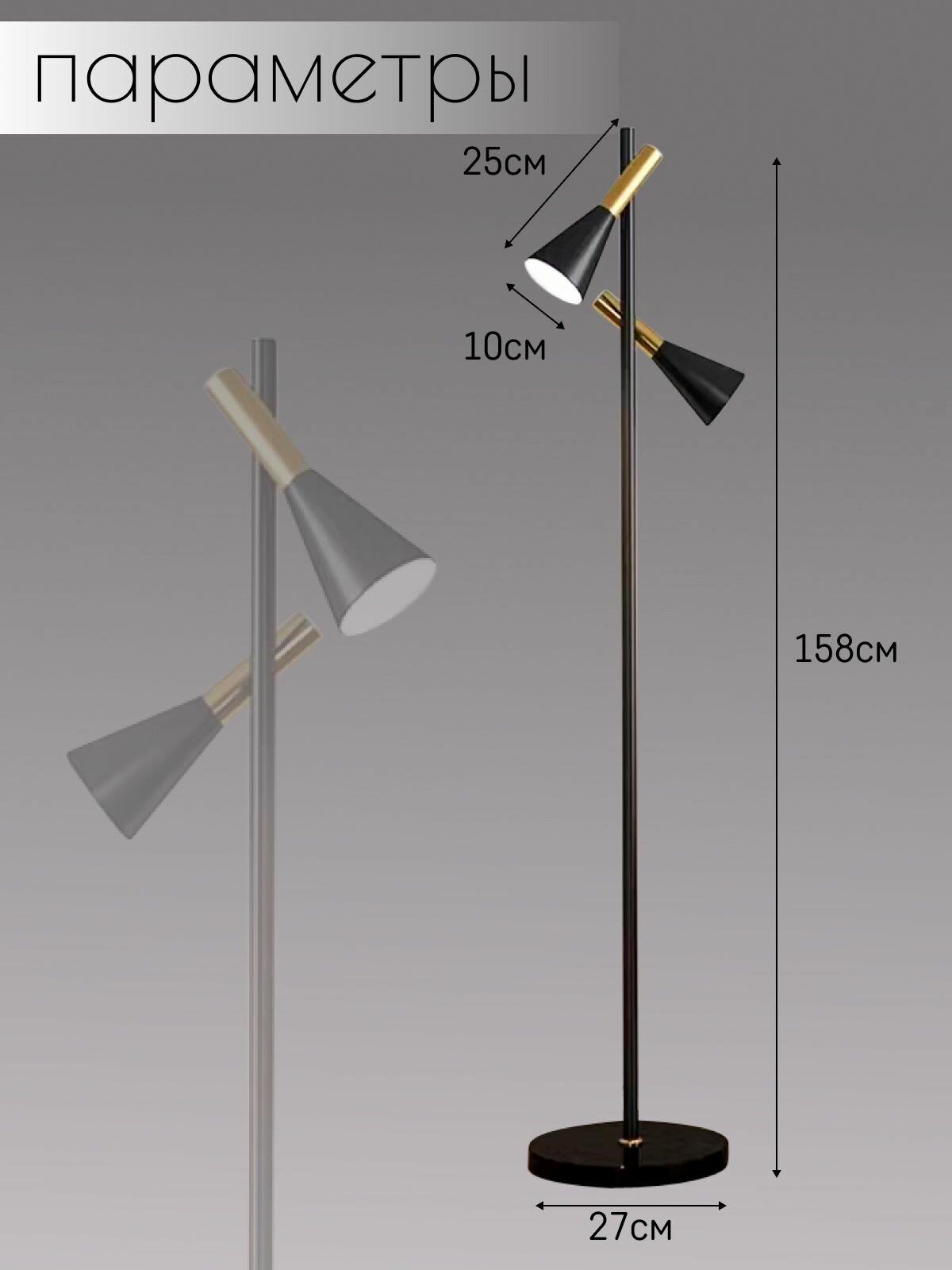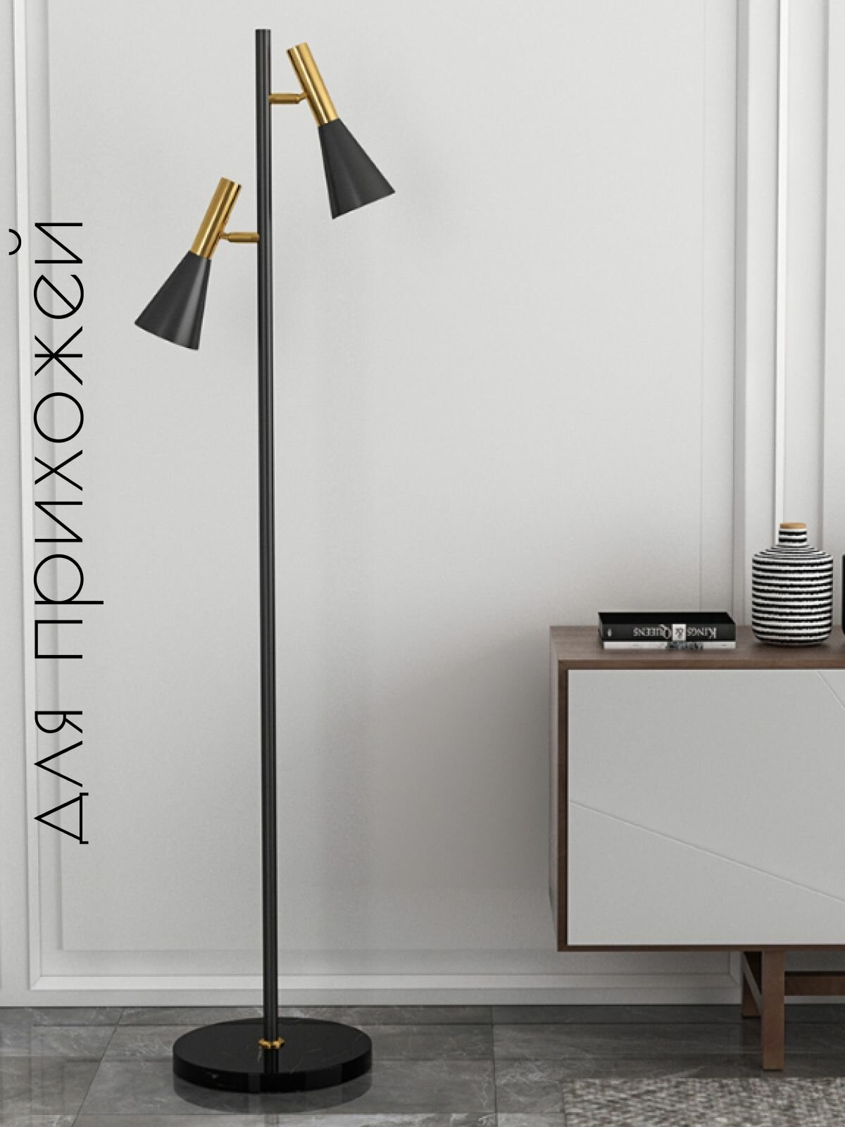 Торшер напольный ЭлисСвет светильник с двумя поворотными лампами, регулируемый, золотой/черный 931LF/2L BK