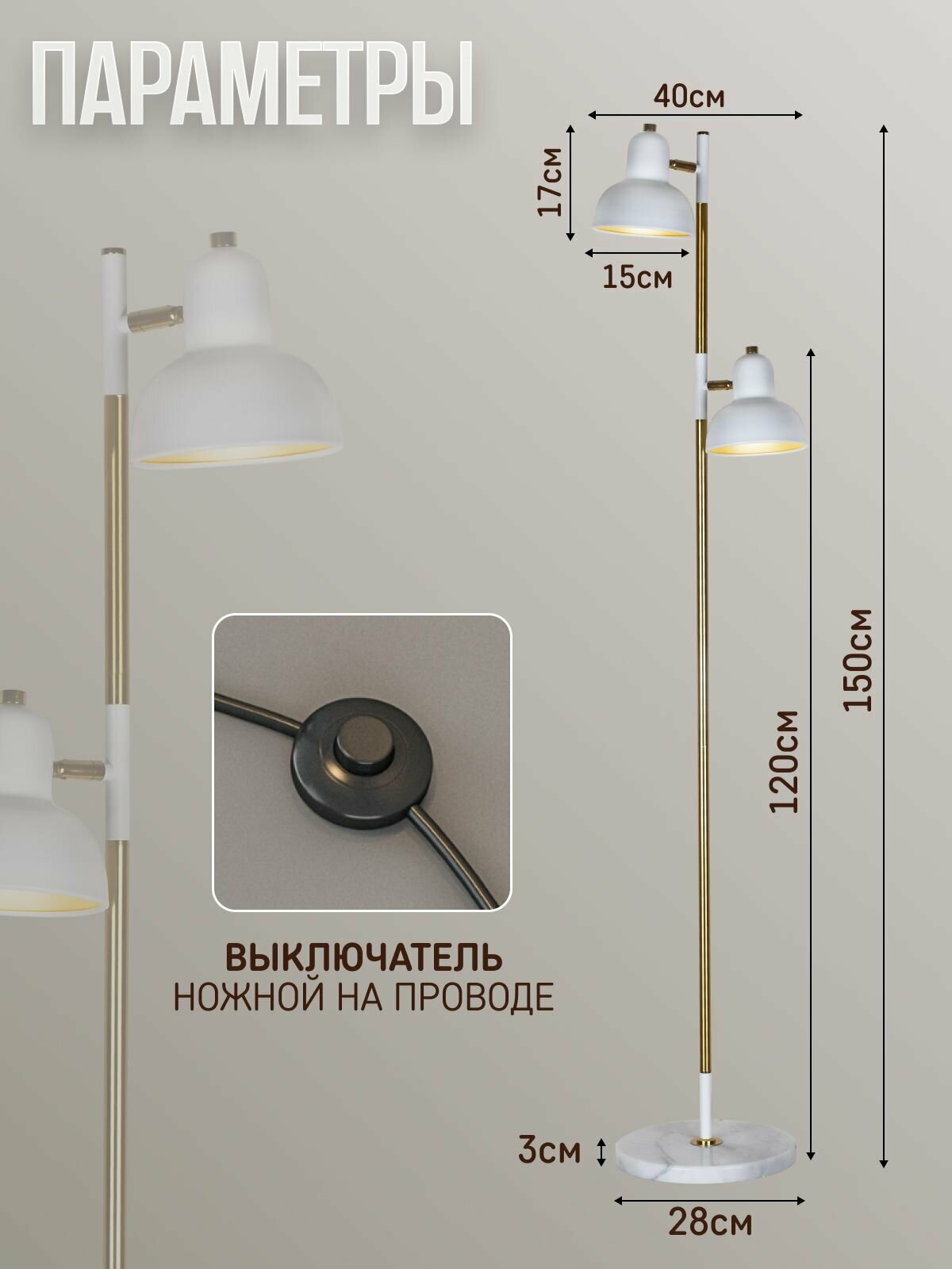 Купить Торшер напольный ЭлисСвет светильник с двумя поворотными лампами, регулируемый, золотой/белый 931LF/2L WT