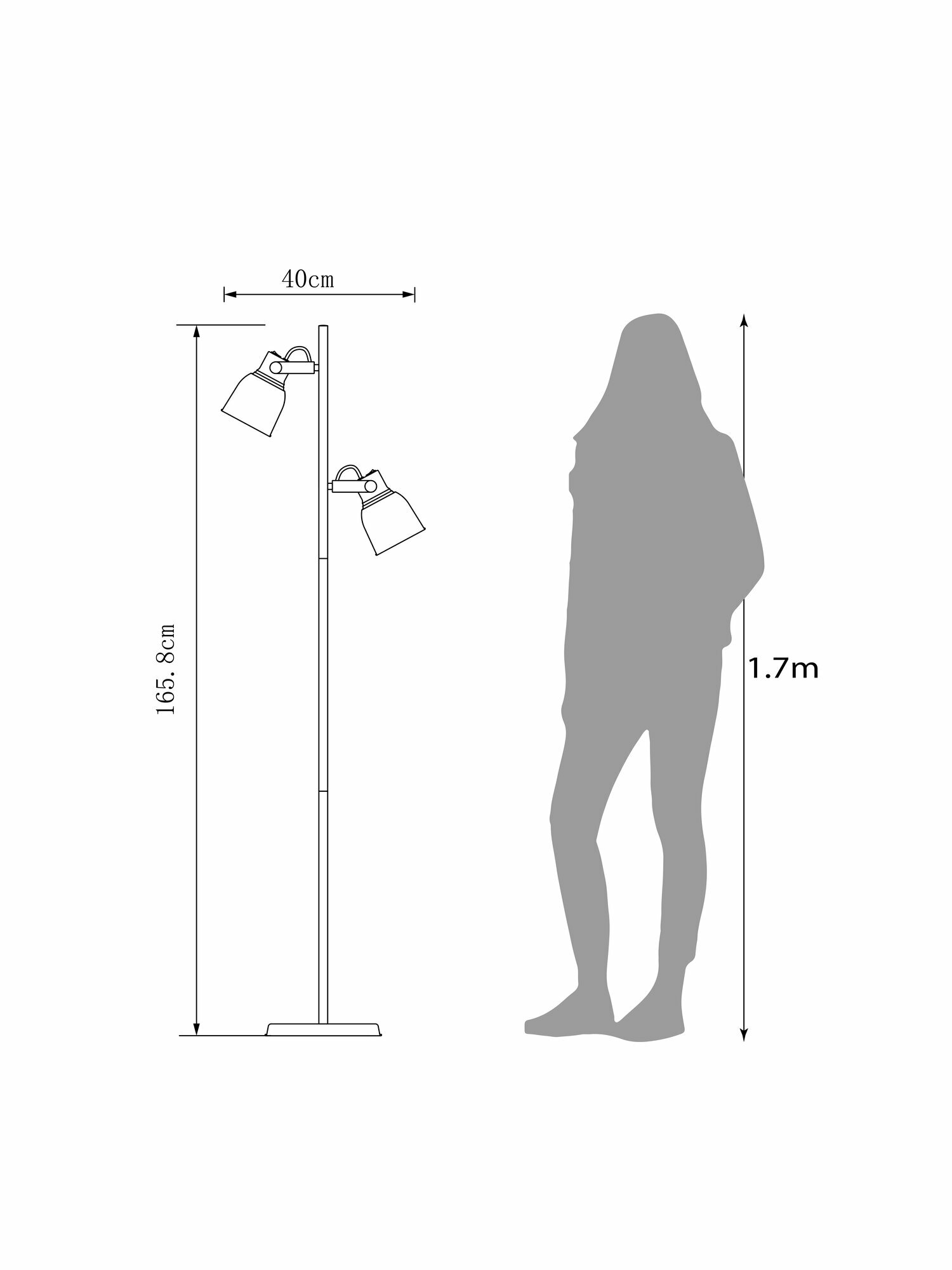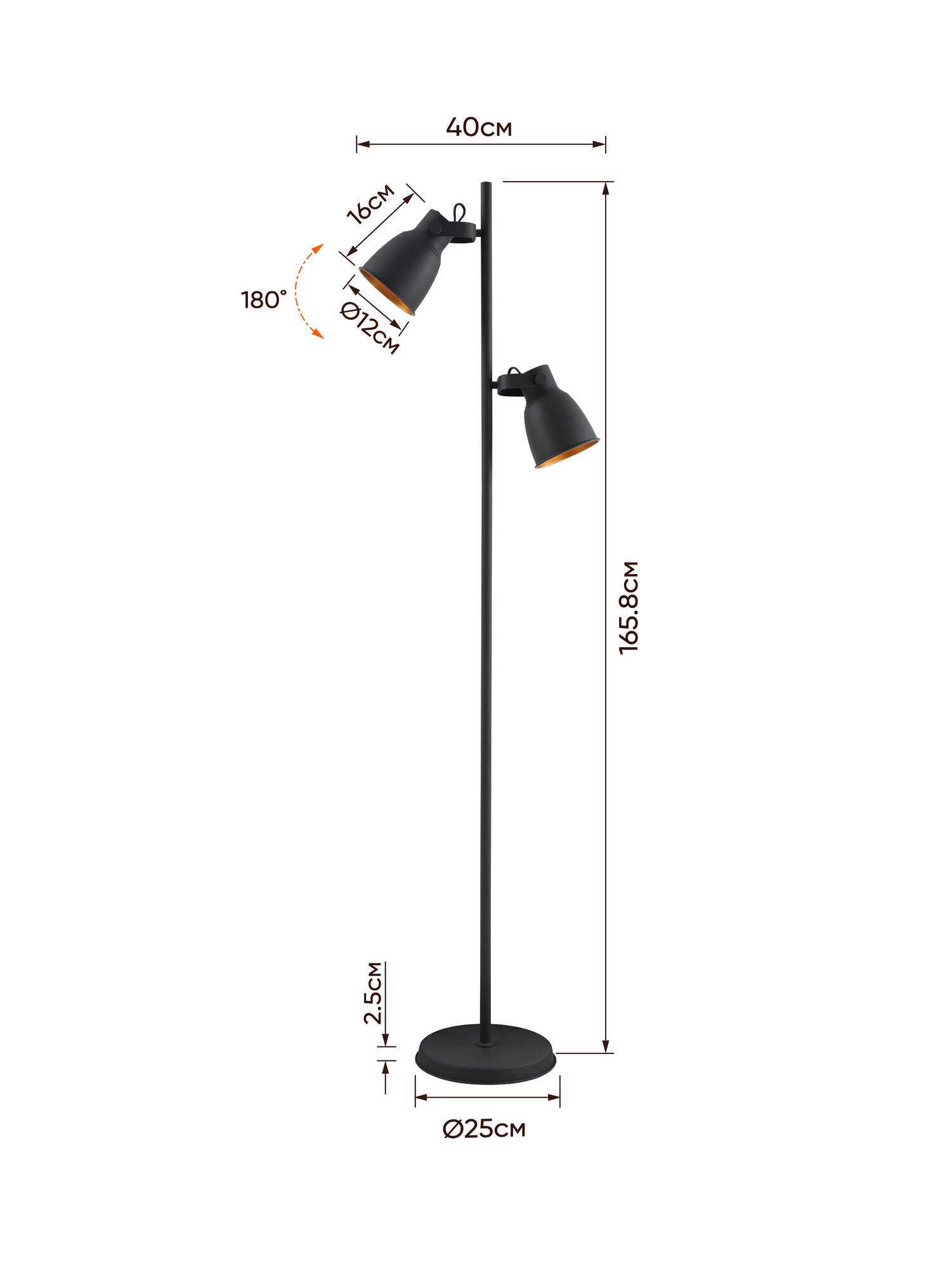 Купить Торшер напольный с двумя абажурами. Светильник напольный с 2 лампами, Е27, металлический, черный.