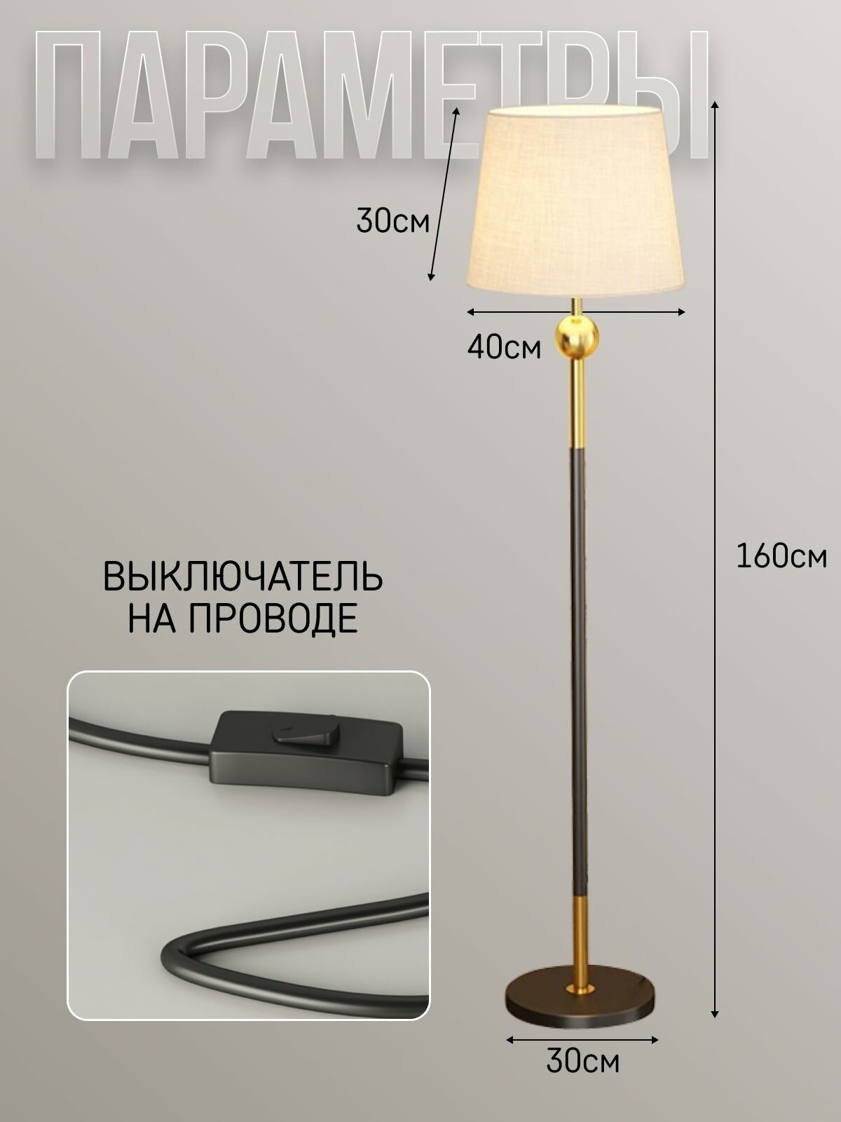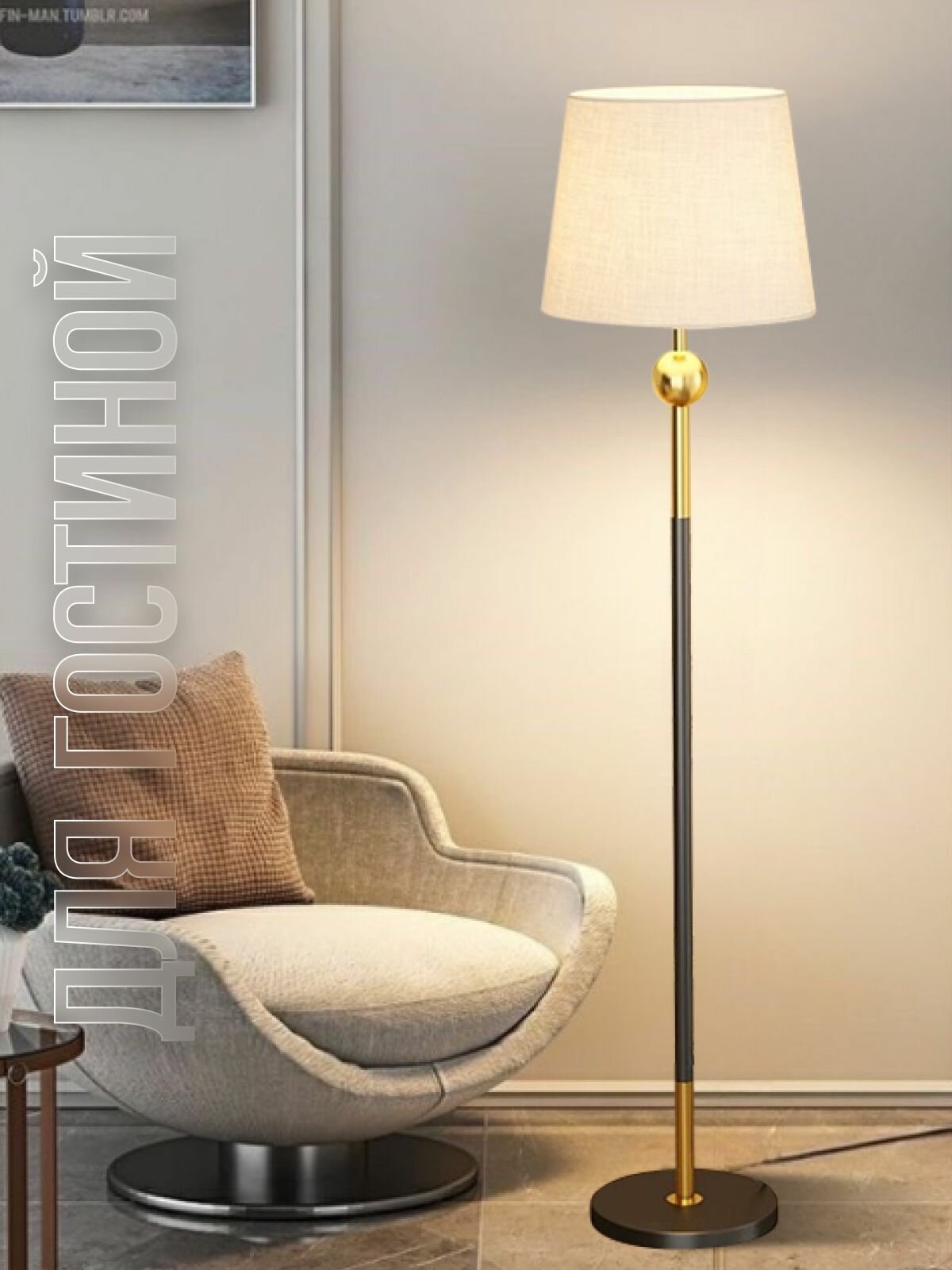 Торшер напольный ЭлисСвет светильник с тканевым абажуром, черный 5866LF/1L BK+GD интересное: