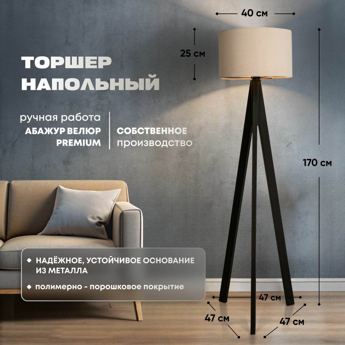 Купить Торшер напольный светильник Е27 с абажуром для гостинной, спальни, лампа для чтения