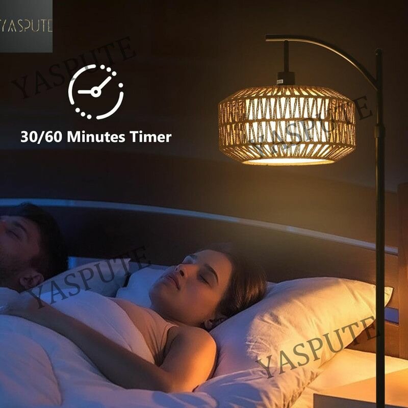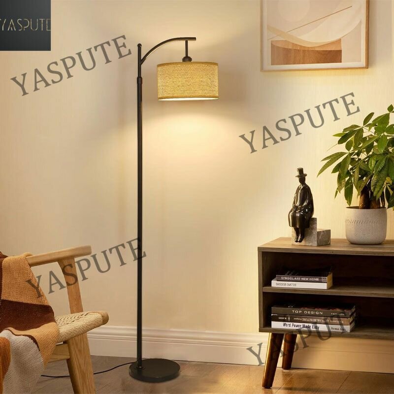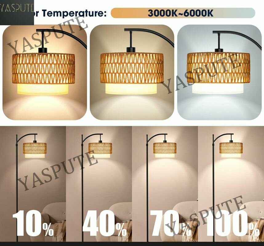 Купить Торшер с двухслойным плетеным абажуром (1 штука, регулируемый по высоте, светодиодный, модный и простой)