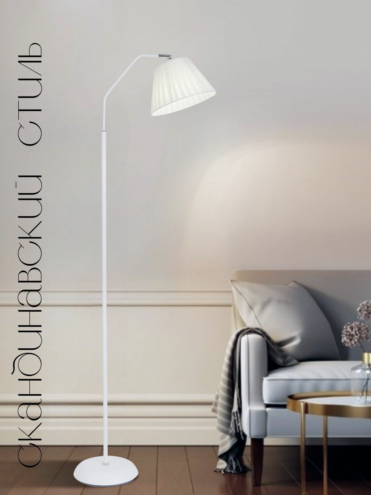 Торшер напольный ЭлисСвет светильник регулируемый, с тканевым абажуром, белый 5812LF/2L WT интересное: