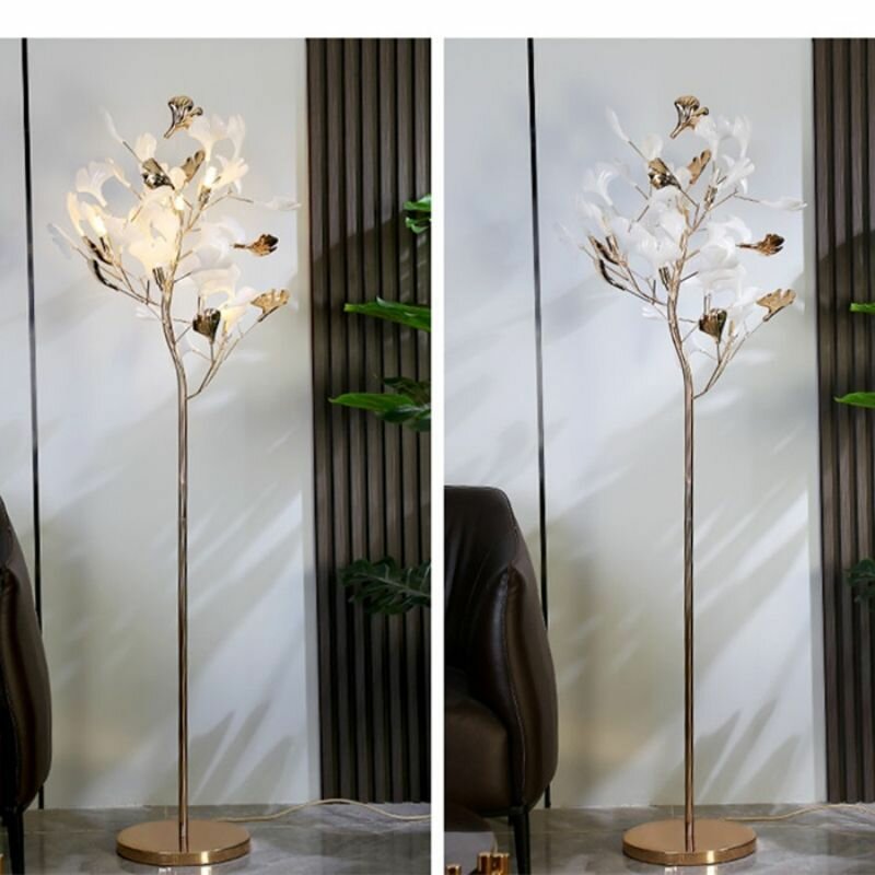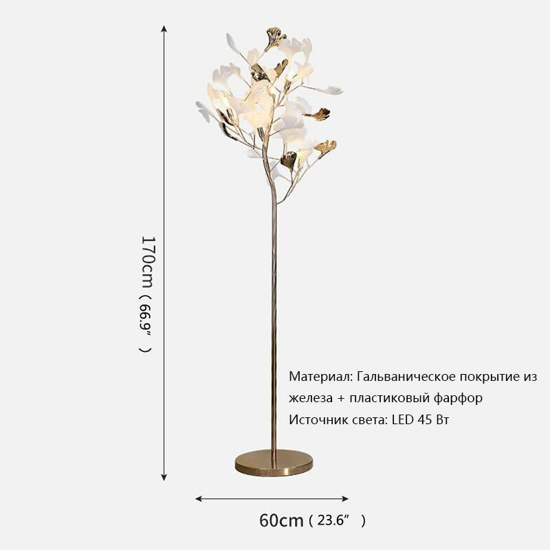 Торшер "Гинкго Билоба", мощность 50Вт, цоколь G9, лампы накаливания, диммируемый, белый, кремовый интересное: