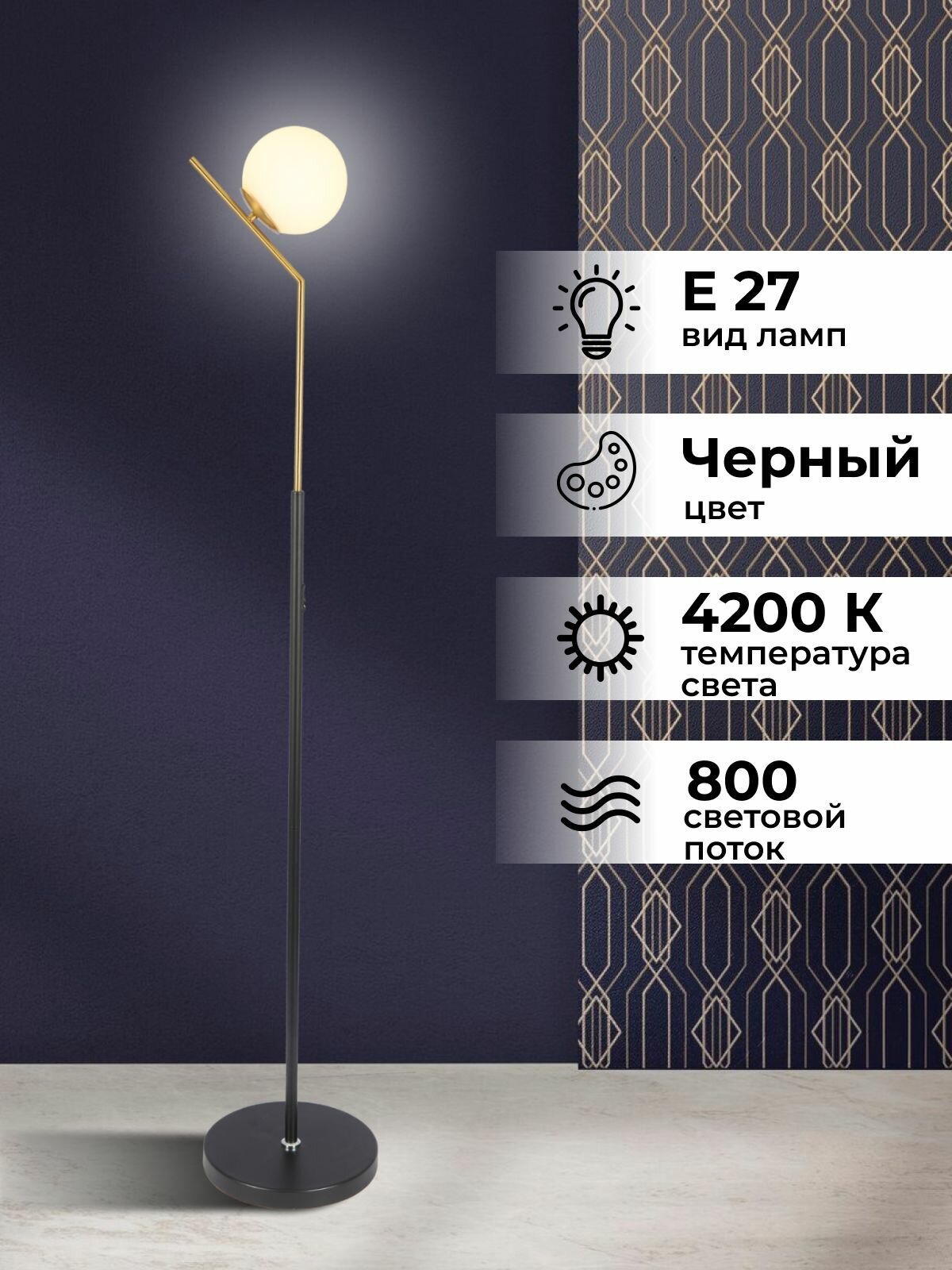 Торшер напольный ЭлисСвет светильник шар, черный 5861LF/1L BK интересное: