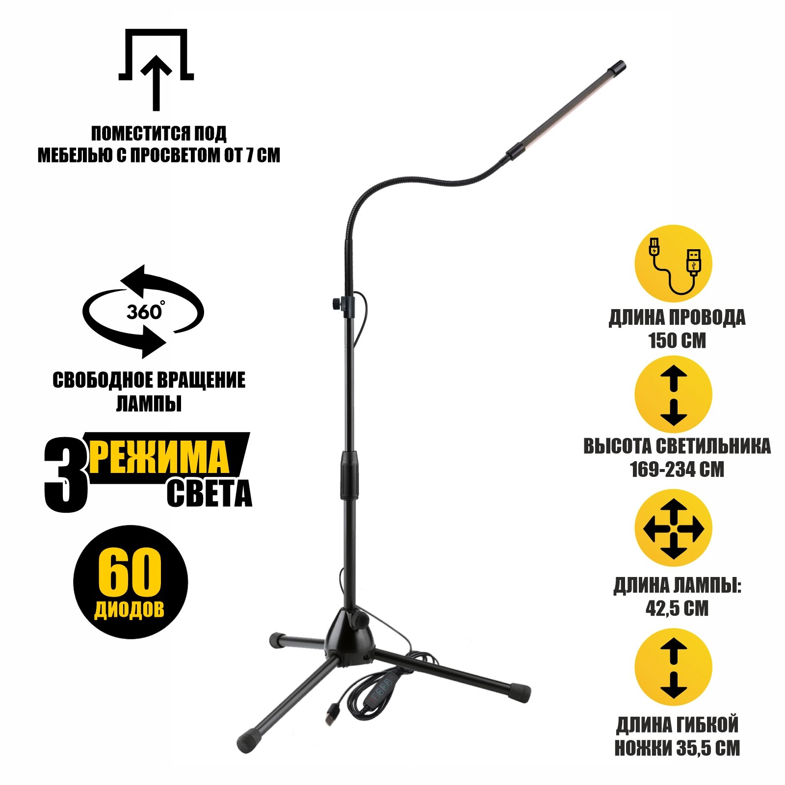 Светильник GSV-ML для наращивания ресниц, маникюра, лампа косметологическая черная напольная интересное: