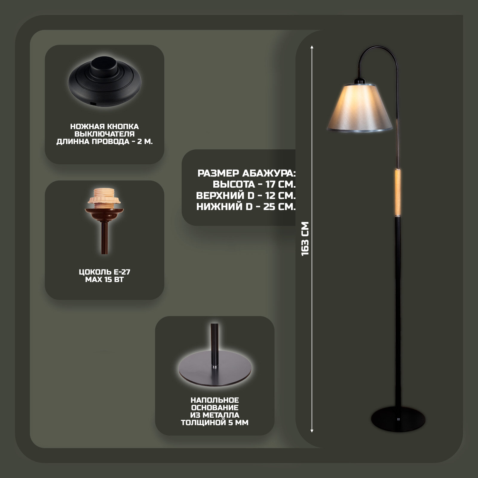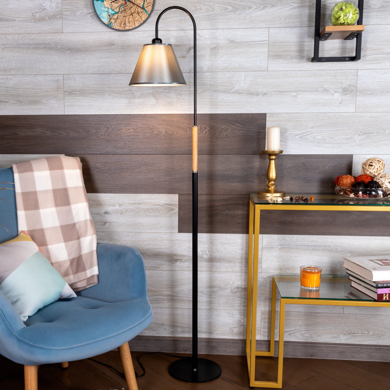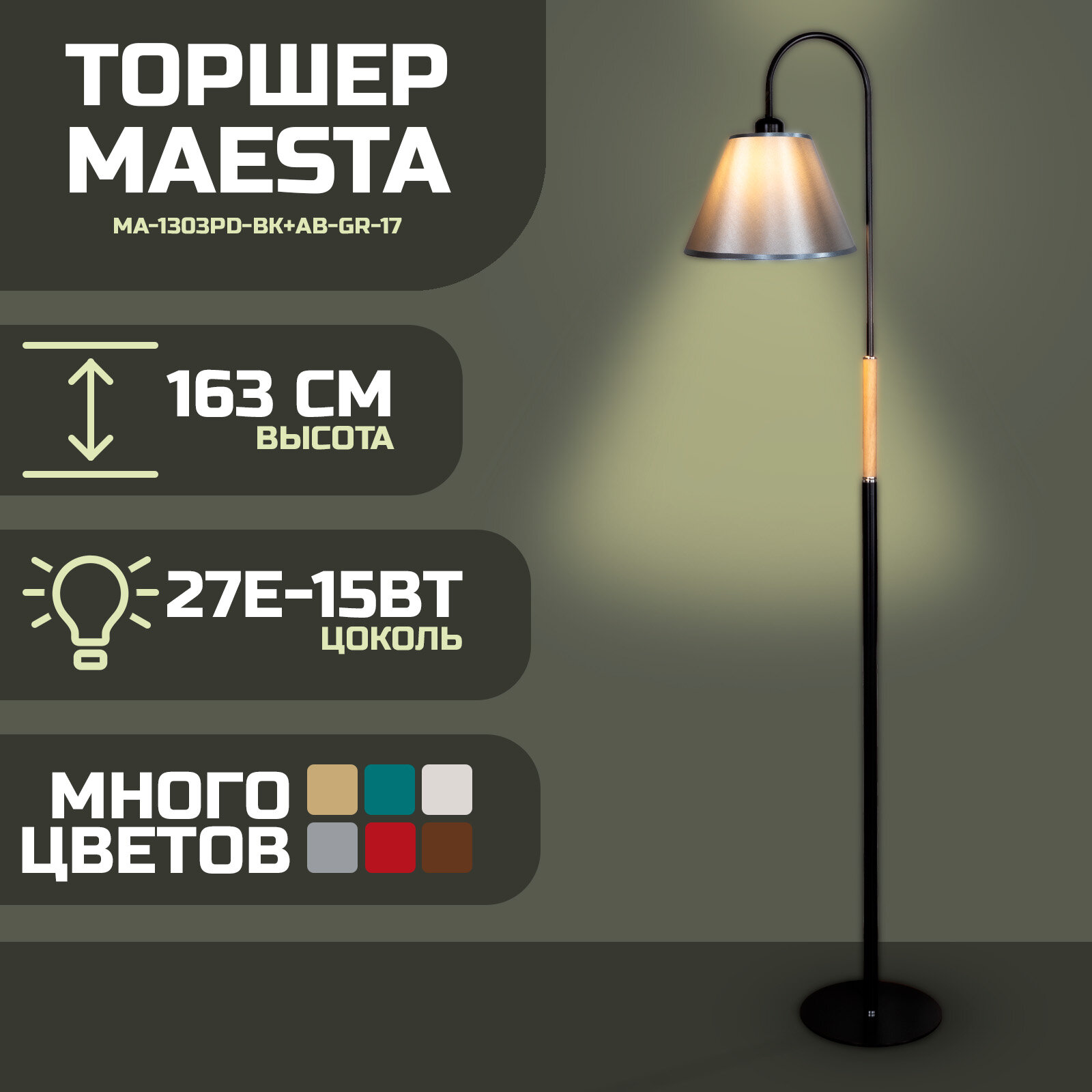 Напольный светильник, торшер. Черный/серый. MA-1303PD-BK+AB-GR-17, E27, 15 Вт. интересное: