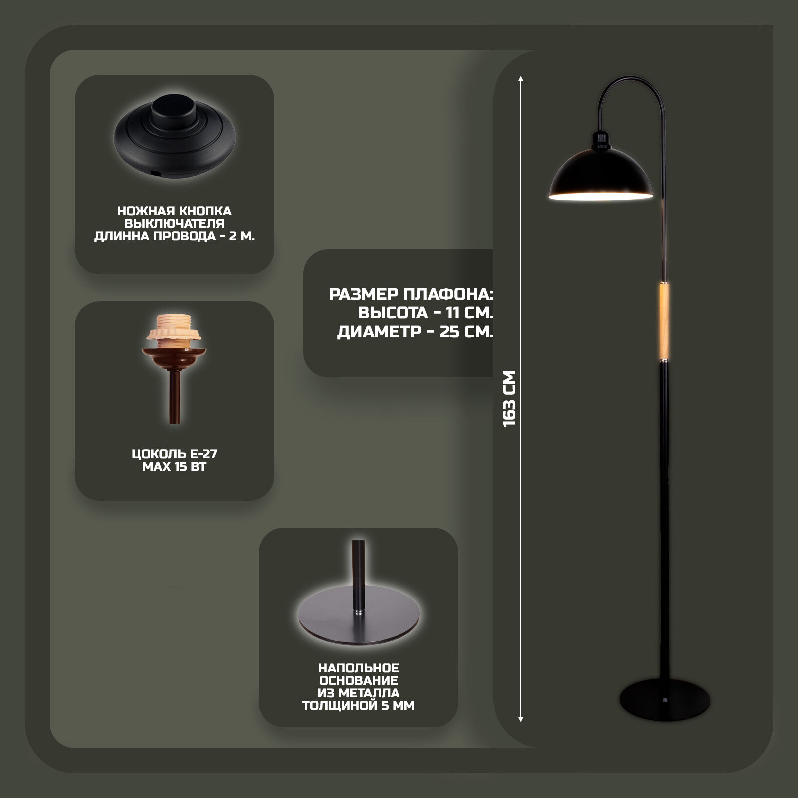 Торшер напольный в скандинавском стиле черный