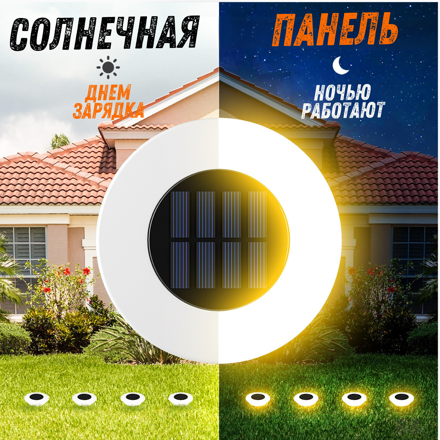 Садовые светильники на солнечной батарее, теплый свет, влагозащищенные, комплект 4 шт, для сада, дорожек и клумб, мд-1