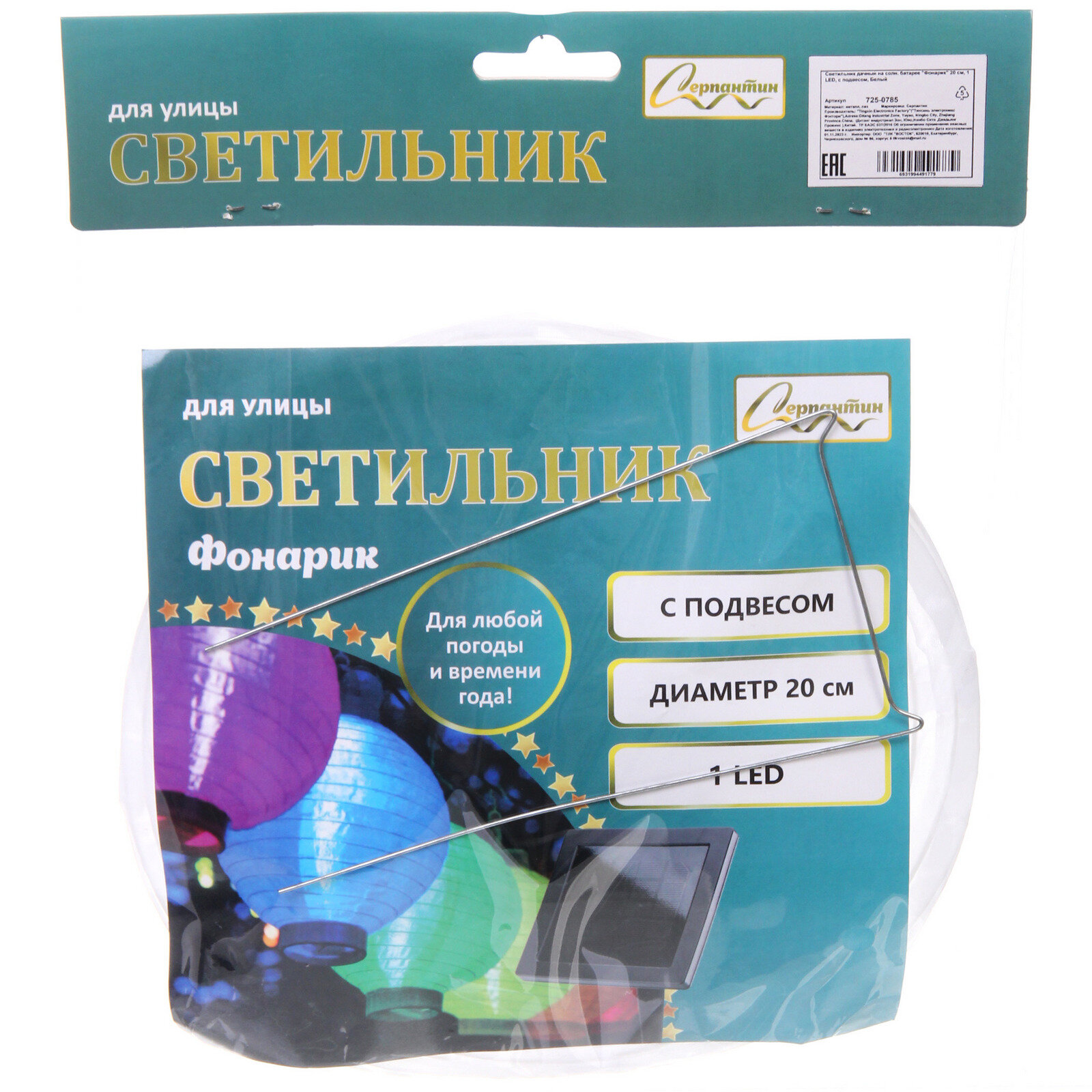 Светильник на солнечной батарее, Китайский Фонарик, диаметр 20 см, Белый интересное: